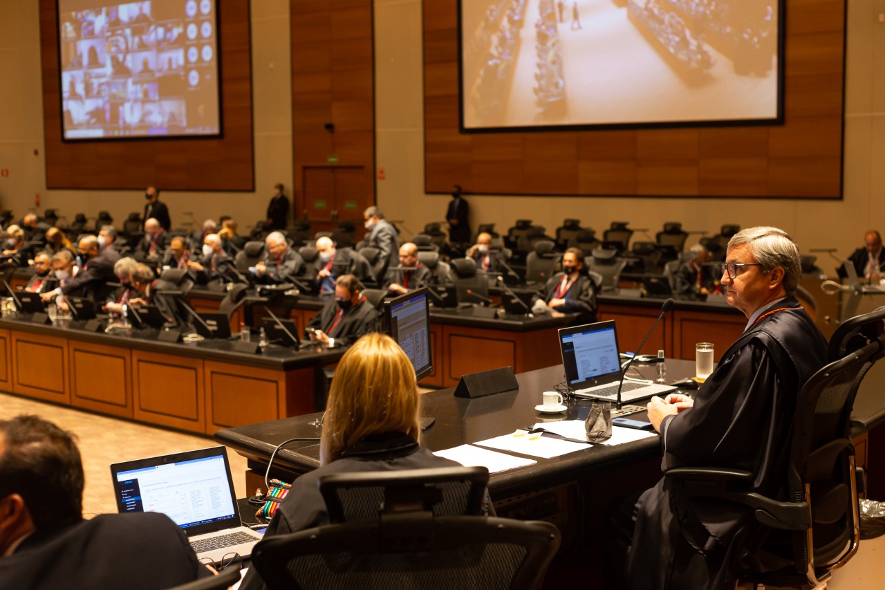 Na votação do primeiro item da pauta, foi aprovada por 111 votos contra 50 a alteração de competência das Câmara Cíveis, com a adoção da divisão para Câmaras especializadas em direito público e direito privado. Por sugestão do desembargador Rogério de Oliveira Souza, também foi colocada em votação e aprovada por 146 votos a competência do Tribunal Pleno para a definição do critério da modificação.