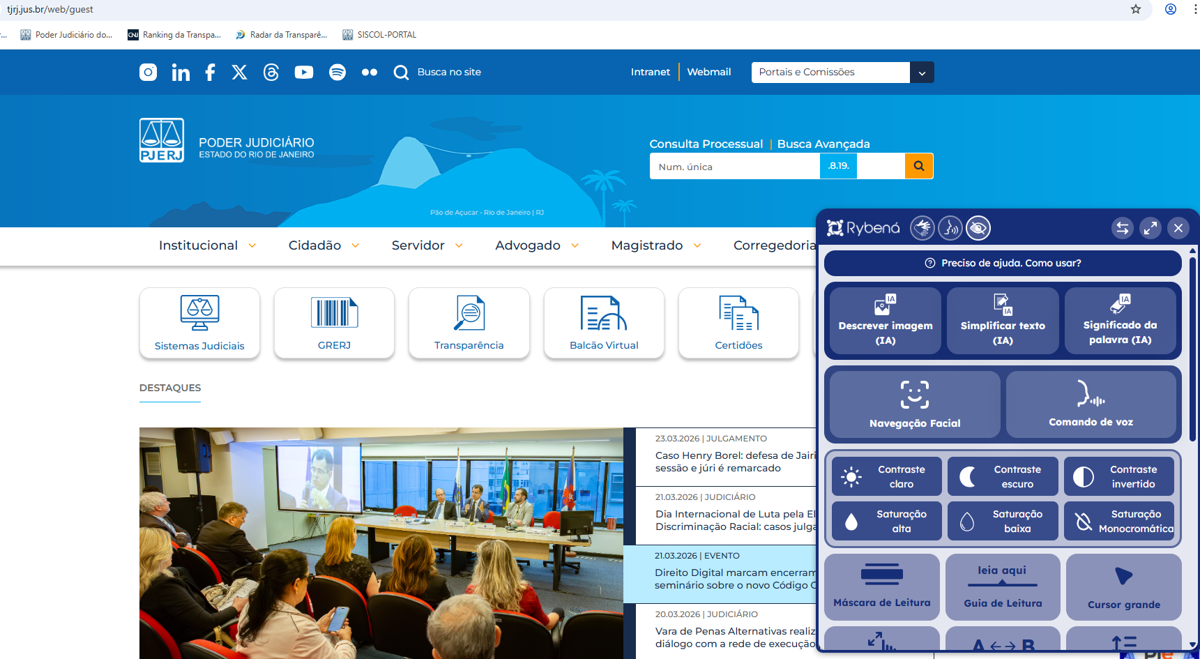 O Tribunal de Justiça do Estado do Rio de Janeiro (TJRJ) implementou o Recurso Rybená em seu site, visando melhorar a acessibilidade digital. A nova ferramenta oferece funcionalidades como: