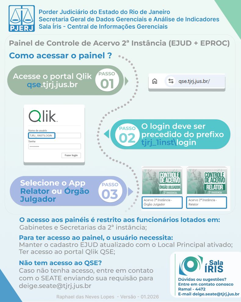 Suporte Em caso de dúvidas sobre o acesso, entre em contato com o SEATE - Serviço de Atendimento às Estatísticas pelo ramal 4472 ou pelo e-mail: deige.seate@tjrj.jus.br.
