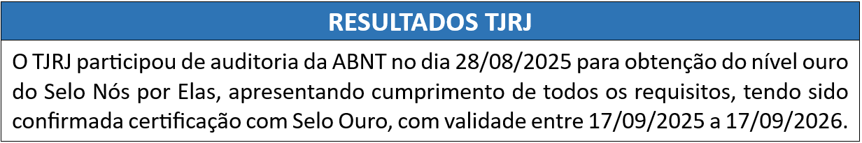A ABNT, em parceria com o Instituto Nós por Elas, desenvolveu uma norma (ABNT PR 1019/2023) com 14 indicadores para avaliar o compromisso das organizações com a proteção dos direitos das mulheres. Com base nos resultados da auditoria, as organizações podem receber o selo em diferentes categorias, como Platina, Ouro, Prata ou Bronze, que atestam o nível de adoção de boas práticas.