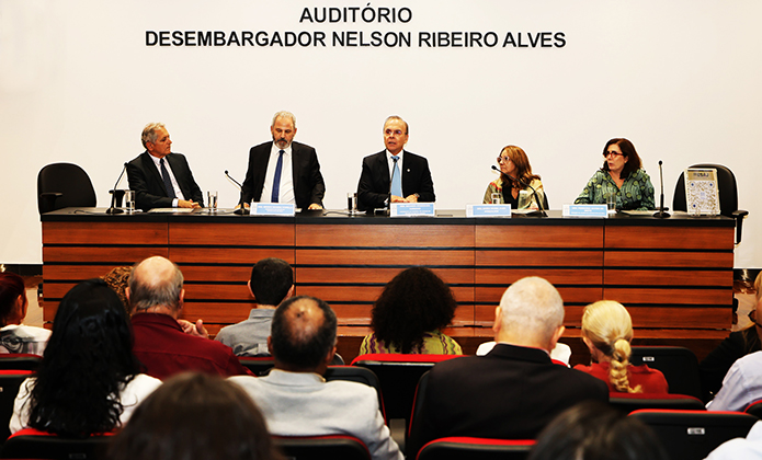 Estiveram presentes desembargador Ricardo Rodrigues Cardozo, presidente do TJRJ; desembargador Sérgio Seabra Varella, presidente do Conselho Consultivo da ESAJ; desembargadora Fernanda Xavier de Brito, membro do Conselho Consultivo da ESAJ; desembargador Fábio Dutra; desembargadora Maria Isabel Paes Gonçalves; desembargador André Gustavo Corrêa de Andrade (por vídeo); doutora Renata Guarino Martins, juíza auxiliar da presidência; e a professora doutora Lúcia Frota Pestana de Aguiar, diretora da ESAJ.