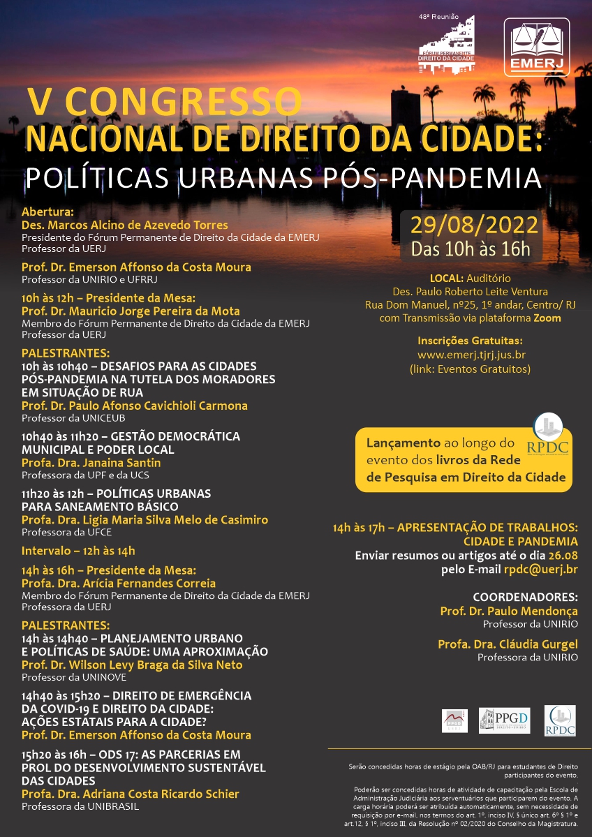 V Congresso Nacional de Direito da cidade: Políticas urbanas pós-pandemia