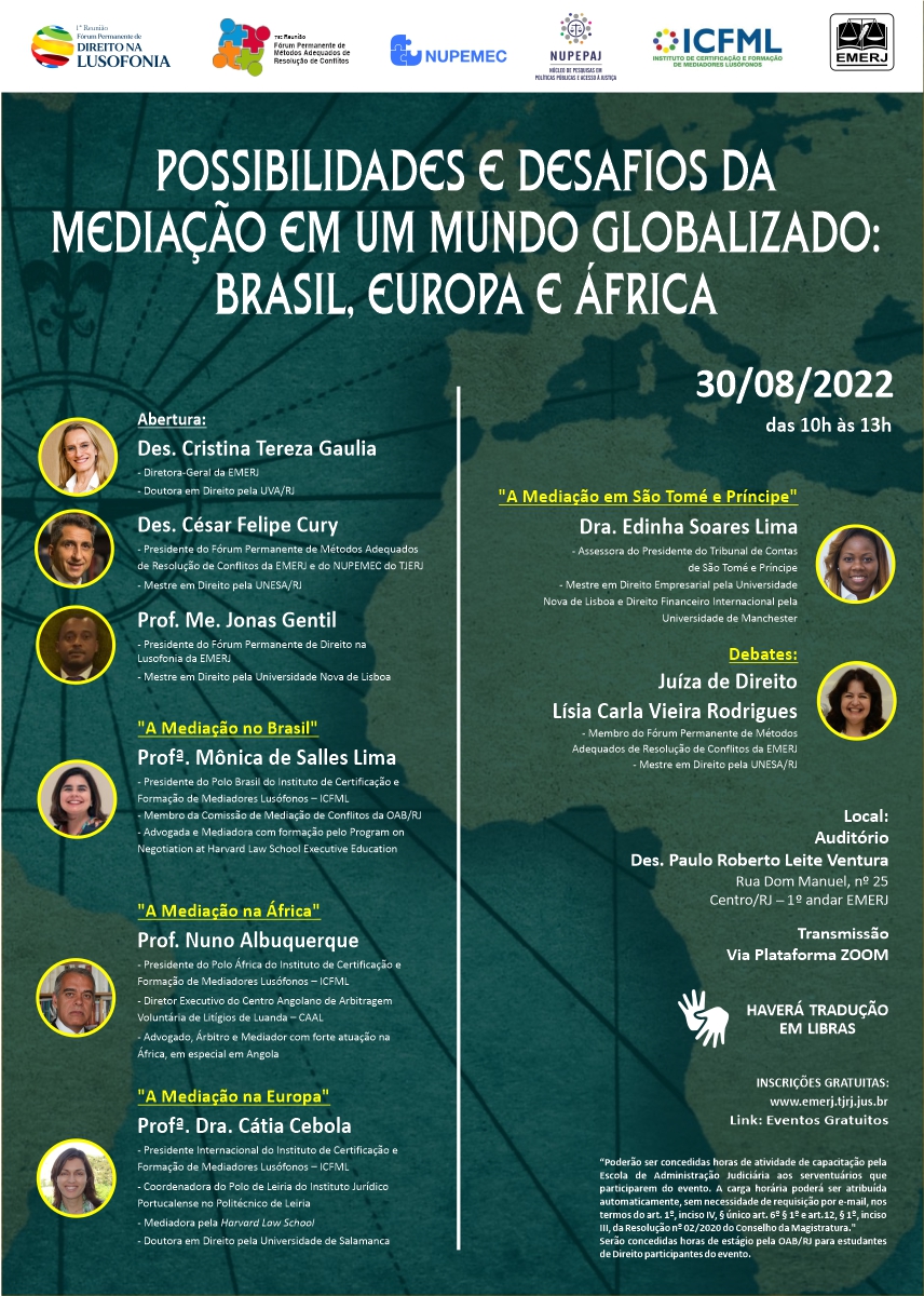 “Possibilidades e desafios da mediação em um mundo globalizado: Brasil, Europa e África”