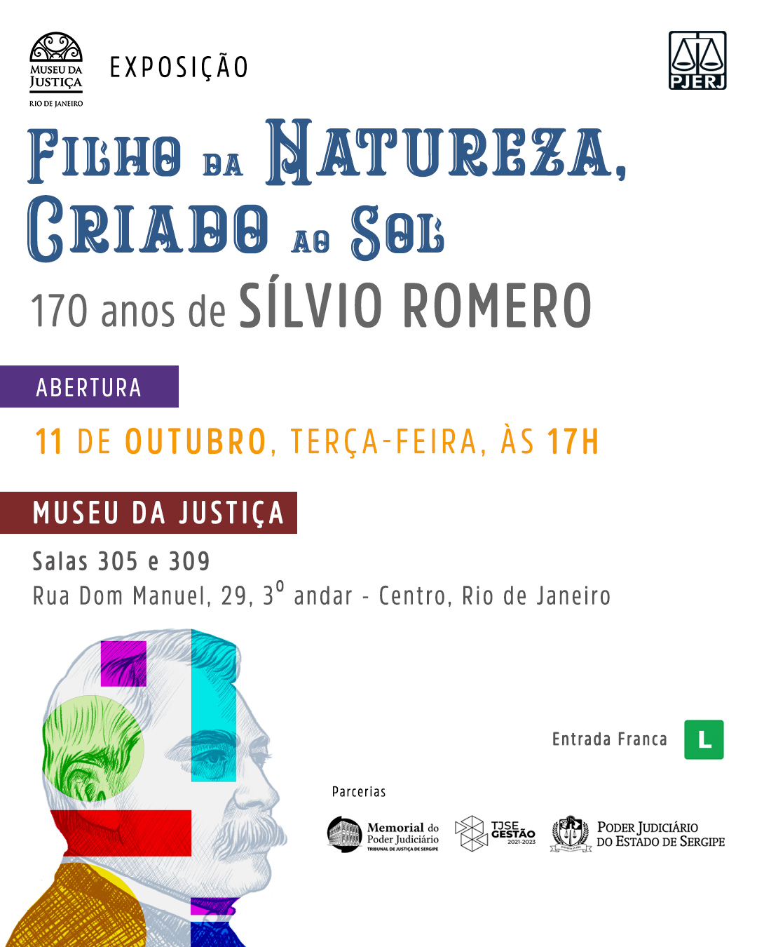 O Museu da Justiça, em parceria com o Memorial do Poder Judiciário do Tribunal de Justiça de Sergipe, vai inaugurar no dia 11 de outubro a exposição “Filho da Natureza, Criado ao Sol - 170 anos de Sílvio Romero”, em comemoração ao marco de nascimento do personagem sergipano que marcou a área jurídica e cultural na literatura, na crítica literária, na filosofia, na educação e no folclore.