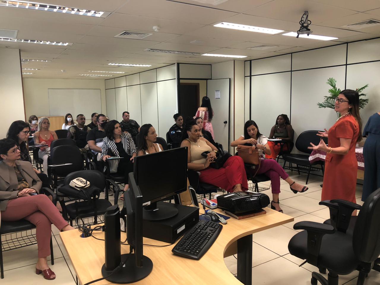 A iniciativa integrou as comemorações da 22ª edição da Semana da Justiça pela Paz em Casa e foi realizada no Fórum Regional da Leopoldina. Participaram do encontro a juíza Camila Rocha Guerin, do VI Juizado de Violência Doméstica e Familiar da Leopoldina e integrante da COEM, a promotora de Justiça Eyleen Oliveira, a assistente social Soyanni Silva Alves e a professora e pesquisadora universitária Lívia de Meira Lima Paiva.