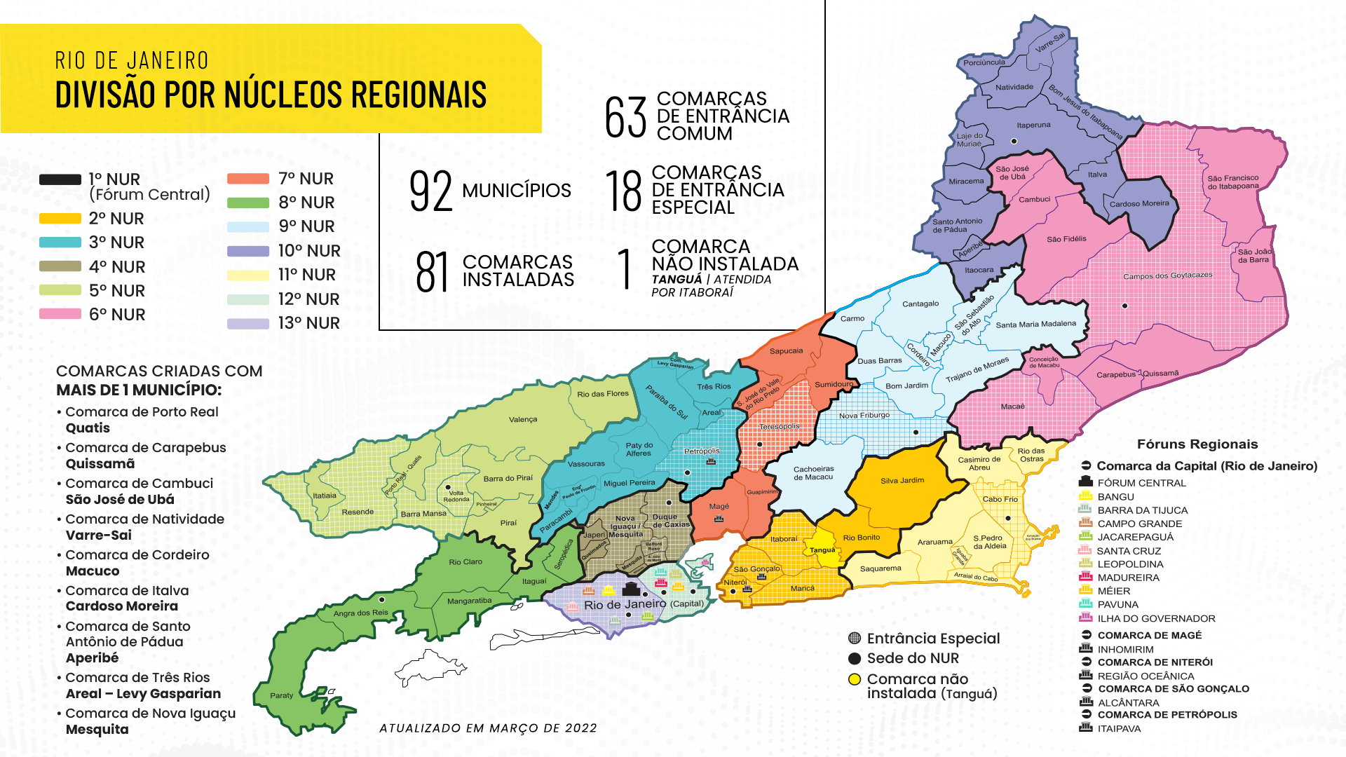 O TJRJ divide o estado do Rio em 13 Núcleos Regionais (NURs). O 2º NUR abrange as cidades de Niterói, São Gonçalo, Itaboraí, Maricá, Rio Bonito, Silva Jardim e Tanguá. Com dois municípios que figuram entre os três maiores do estado, o acervo processual chama atenção.