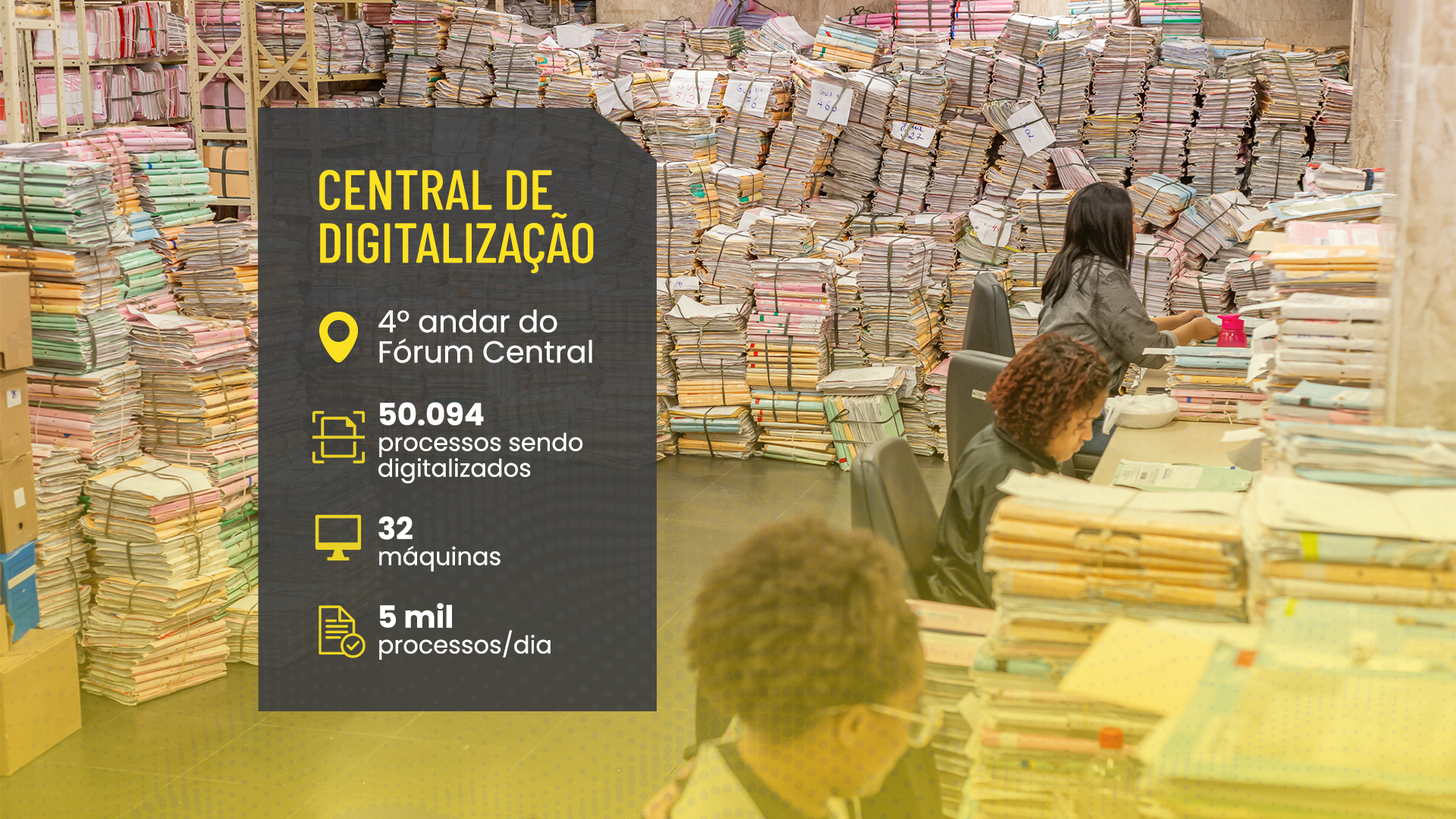 Uma empresa terceirizada realiza a digitalização e lança num sistema informatizado que permite a indexação das peças à distância numa força-tarefa que é realizada por grupos de servidores coordenados pela DGJUR. ", explica a diretora da DGJUR, Alessandra Anátocles. Ela acrescenta que a diretoria presta apoio aos cartórios com dificuldades em preparar o acervo físico para virtualização.
