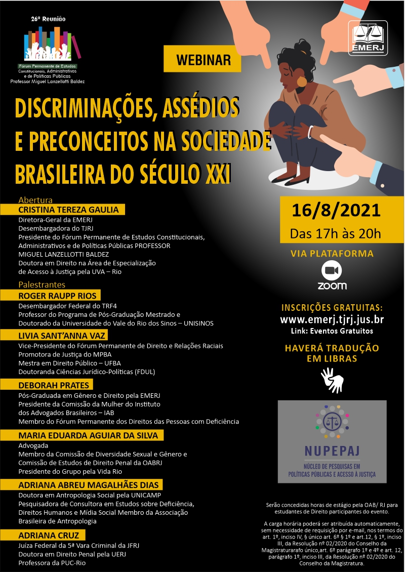 Webinar: Discriminações, assédios e preconceitos na sociedade brasileira do século XXI.