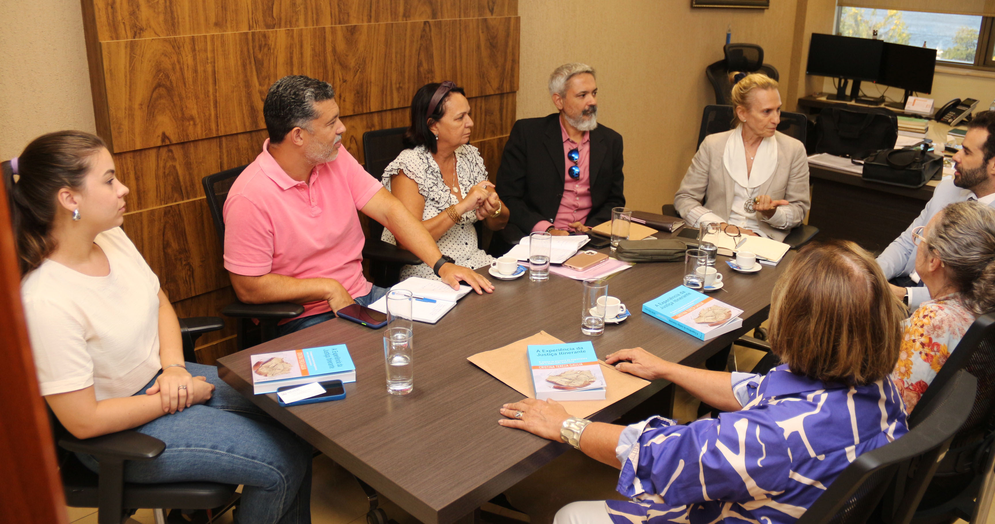 A reunião contou ainda com a presença do juiz Eric Scapim Brandão, que também atua no projeto, da diretora da Divisão da Justiça Itinerante e acesso à Justiça, Marinete Tani, e do servidor Rodrigo Pimentel.