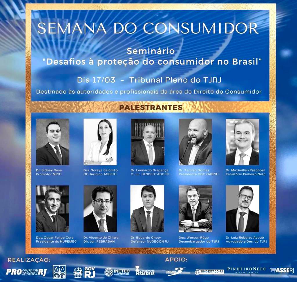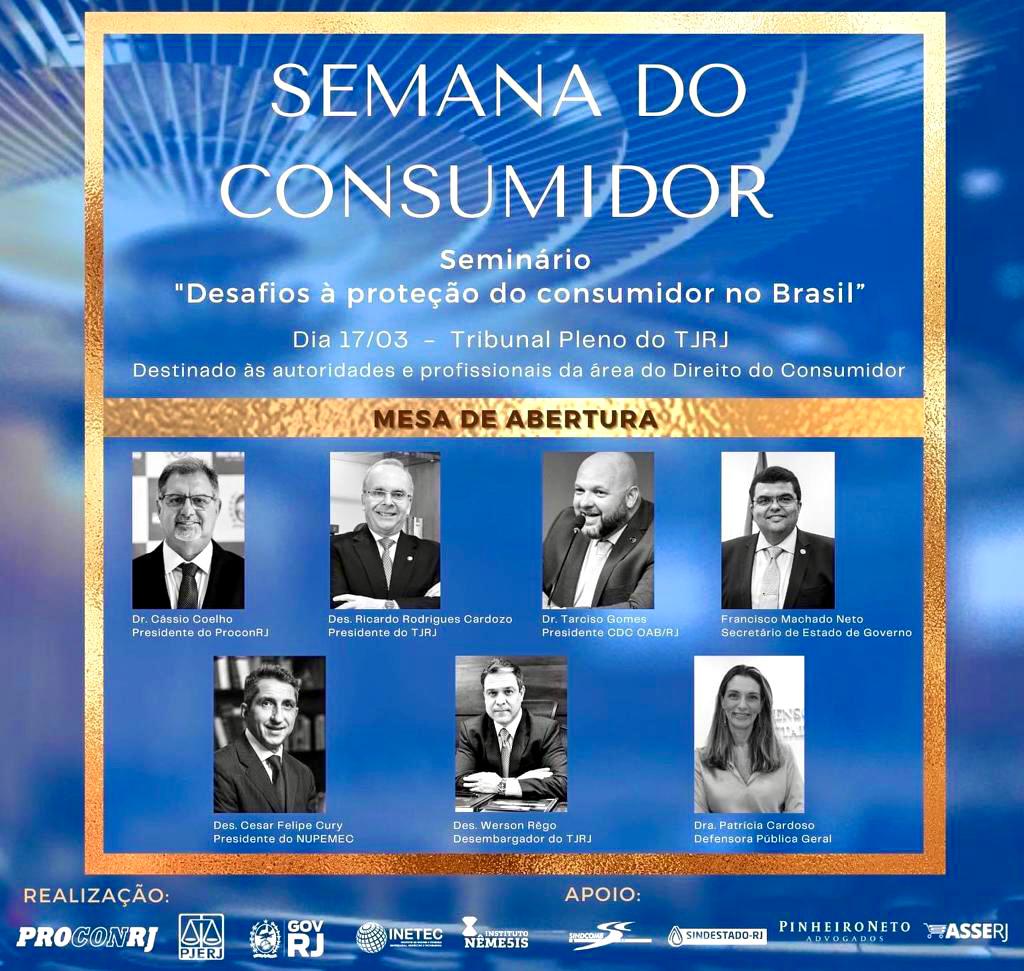 Em comemoração ao Dia Mundial do Consumidor – celebrado em 15 de março –, o Tribunal de Justiça do Estado do Rio de Janeiro promove nesta sexta-feira (17/3), a partir das 9h, o Seminário Desafios Contemporâneos à Proteção e à Defesa do Consumidor no Brasil. O evento, criado para marcar a necessidade de proteção da vida, da saúde, da segurança e dos interesses econômicos do consumidor, por meio de ações que reforcem os seus direitos fundamentais, a sua dignidade e o seu poder de consumo, tem o objetivo de produzir conteúdo acadêmico, voltado à educação e à informação de consumidores e fornecedores sobre seus direitos e deveres recíprocos, prevenindo e/ou solucionando, na prática, demandas cotidianas.