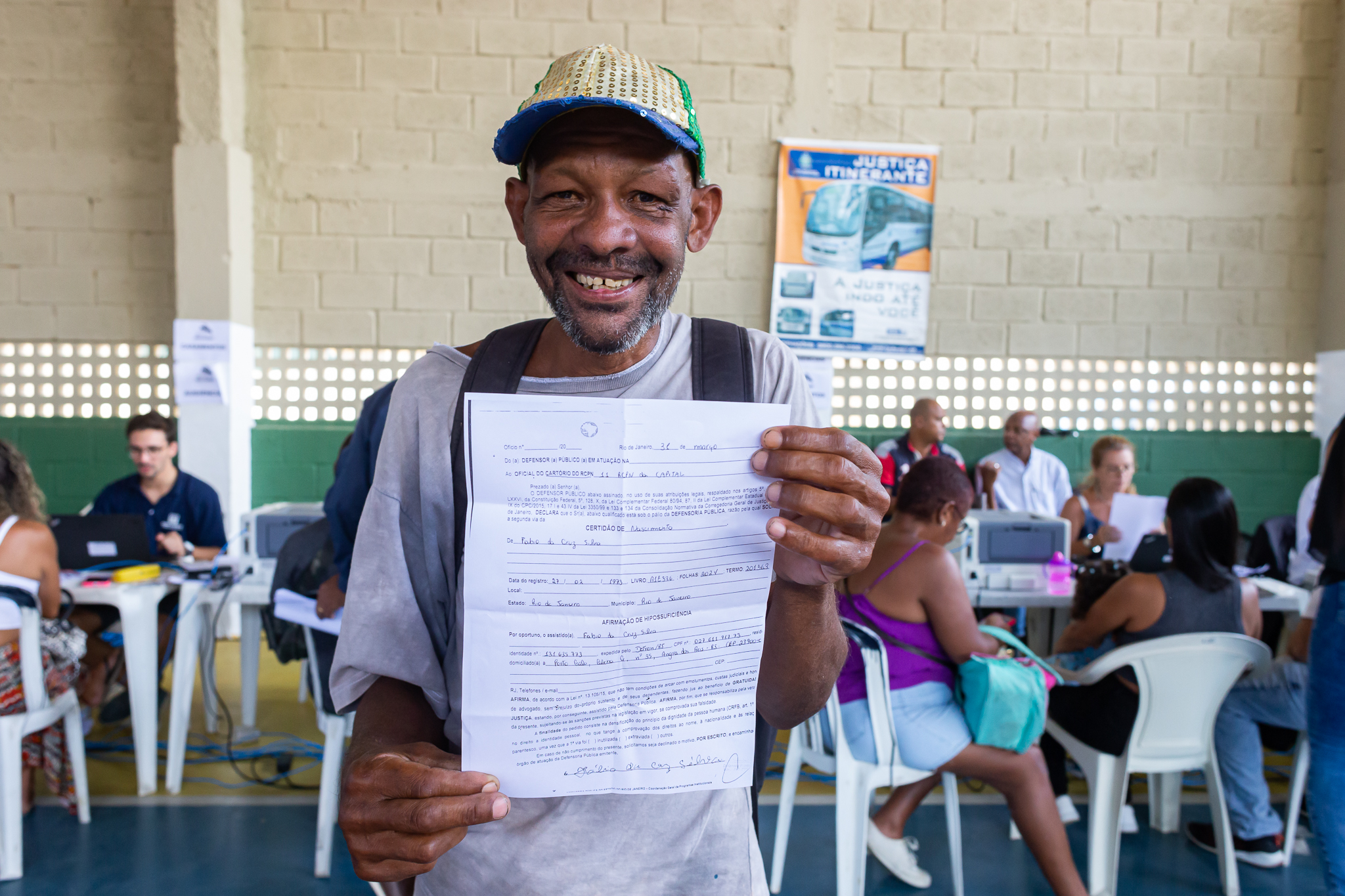Fábio da Cruz Silva, de 50 anos, conseguiu finalmente fazer a segunda via de sua certidão de nascimento e, assim, resgatar a própria cidadania. Natural do Espírito Santo, Fábio mora atualmente em Conceição de Jacareí e trabalha com obras, mas não consegue atendimento na rede pública de saúde pela falta de documentação.
