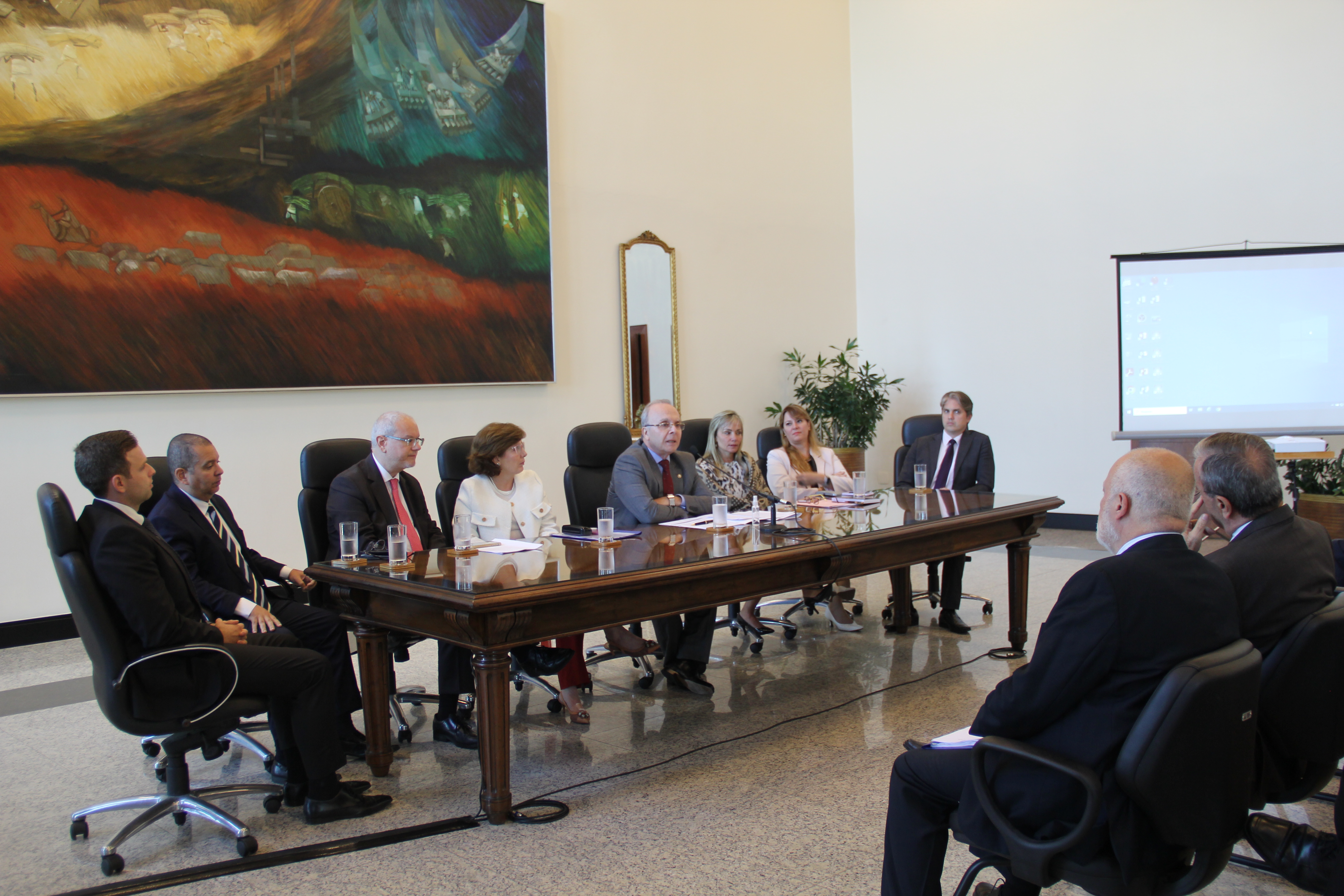 O presidente do Tribunal de Justiça do Estado do Rio de Janeiro (TJRJ), desembargador Ricardo Rodrigues Cardozo, se reuniu, na tarde desta quinta-feira (13/4), com juízes auxiliares da Presidência e secretários-gerais. O objetivo do encontro foi alinhar metas e avaliar resultados das secretarias-gerais nos primeiros 60 dias da atual gestão do TJ. A ideia é promover a reunião a cada três meses.