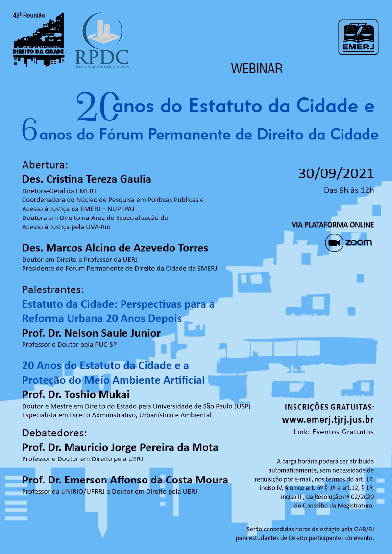 20 anos do Estatuto da cidade e 6 anos do Fórum Permanente de Direito da cidade