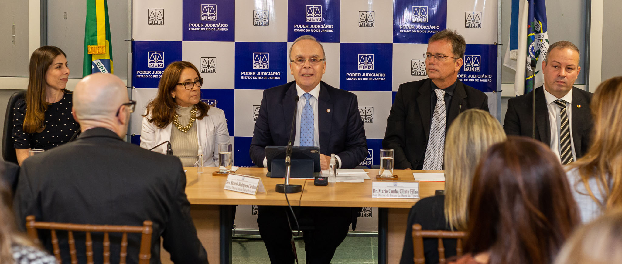Além do presidente do TJRJ e da desembargadora Maria Isabel Paes Gonçalves, participaram da mesa de trabalhos a dirigente do 13º Núcleo Regional, juíza Juliana Kalichsztein; o diretor do Fórum Regional da Barra, Mario Cunha Olinto Filho; e o secretário-geral da Amaerj, Richard Robert Fairclough.