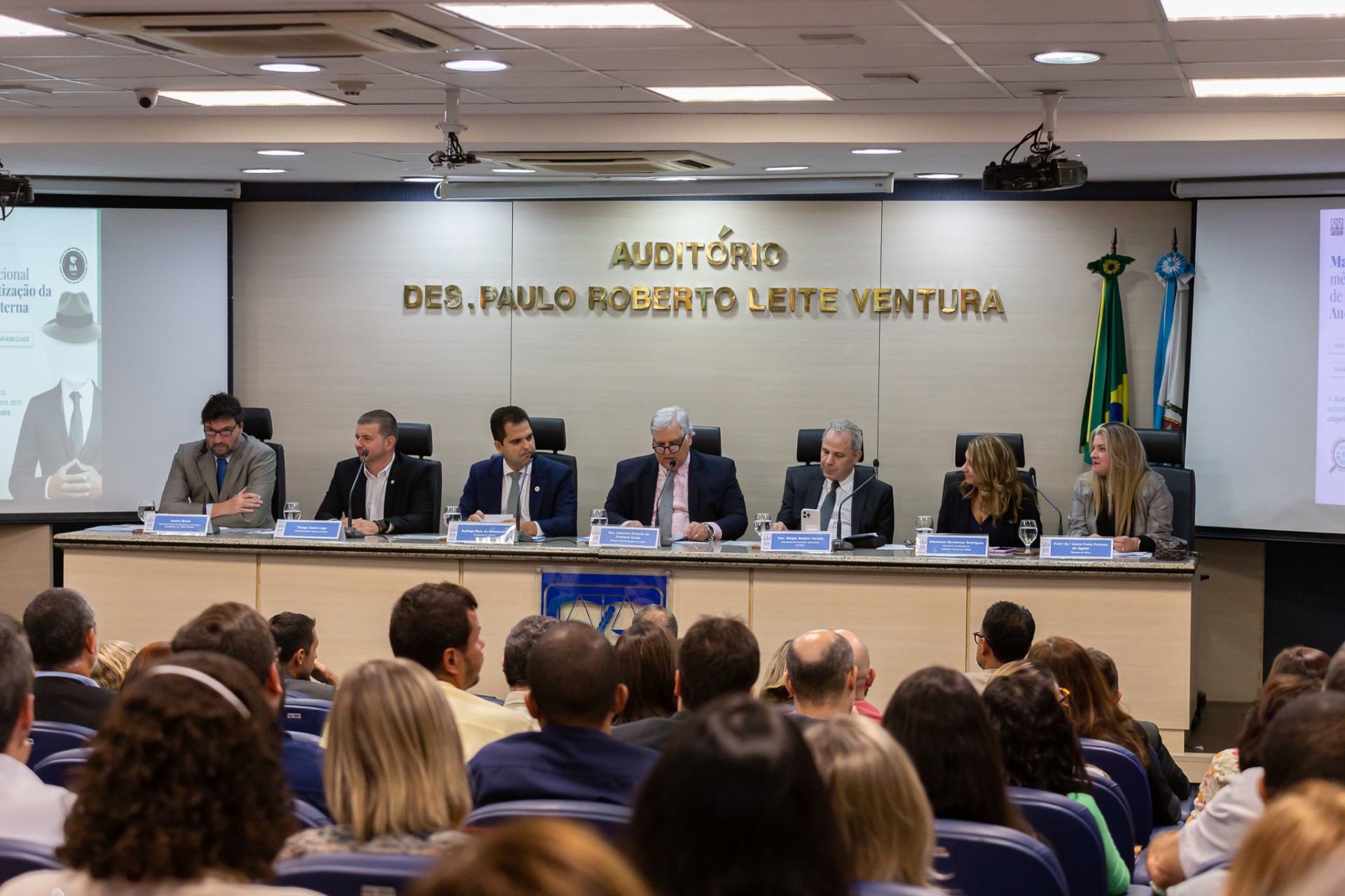 Também participaram da mesa de honra a secretária-geral do Núcleo de Auditoria Interna, Sthefania Mendonça Rodrigues; o secretário-geral de Governança, Inovação e Compliance, Carlos Mauro Brasil Cherubini, que atuou como mediador, e a diretora da Escola de Administração Judiciária, professora doutora Lucia Frota Pestana de Aguiar.