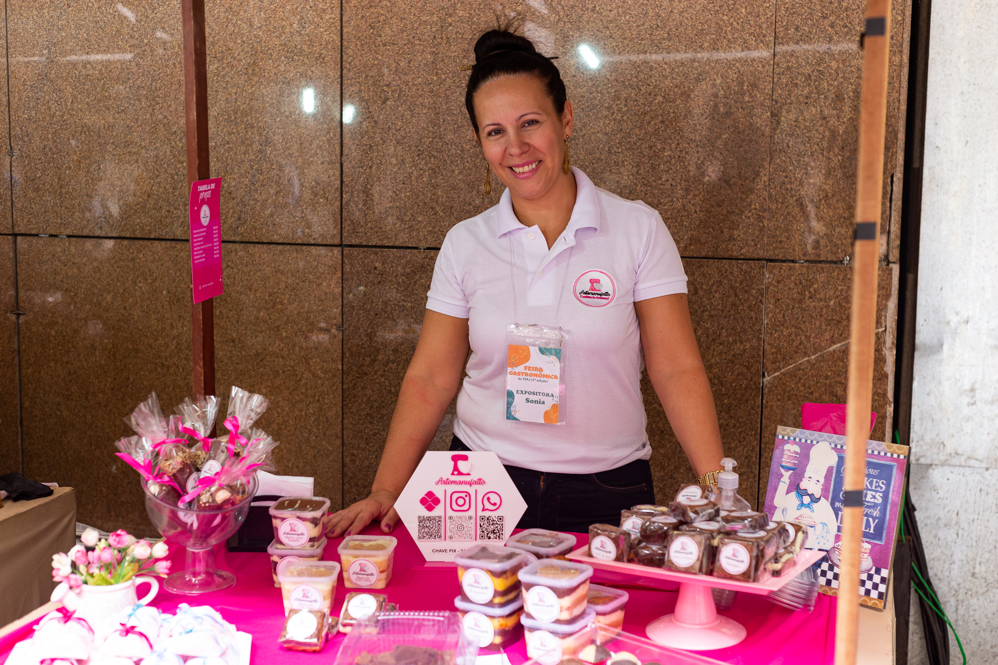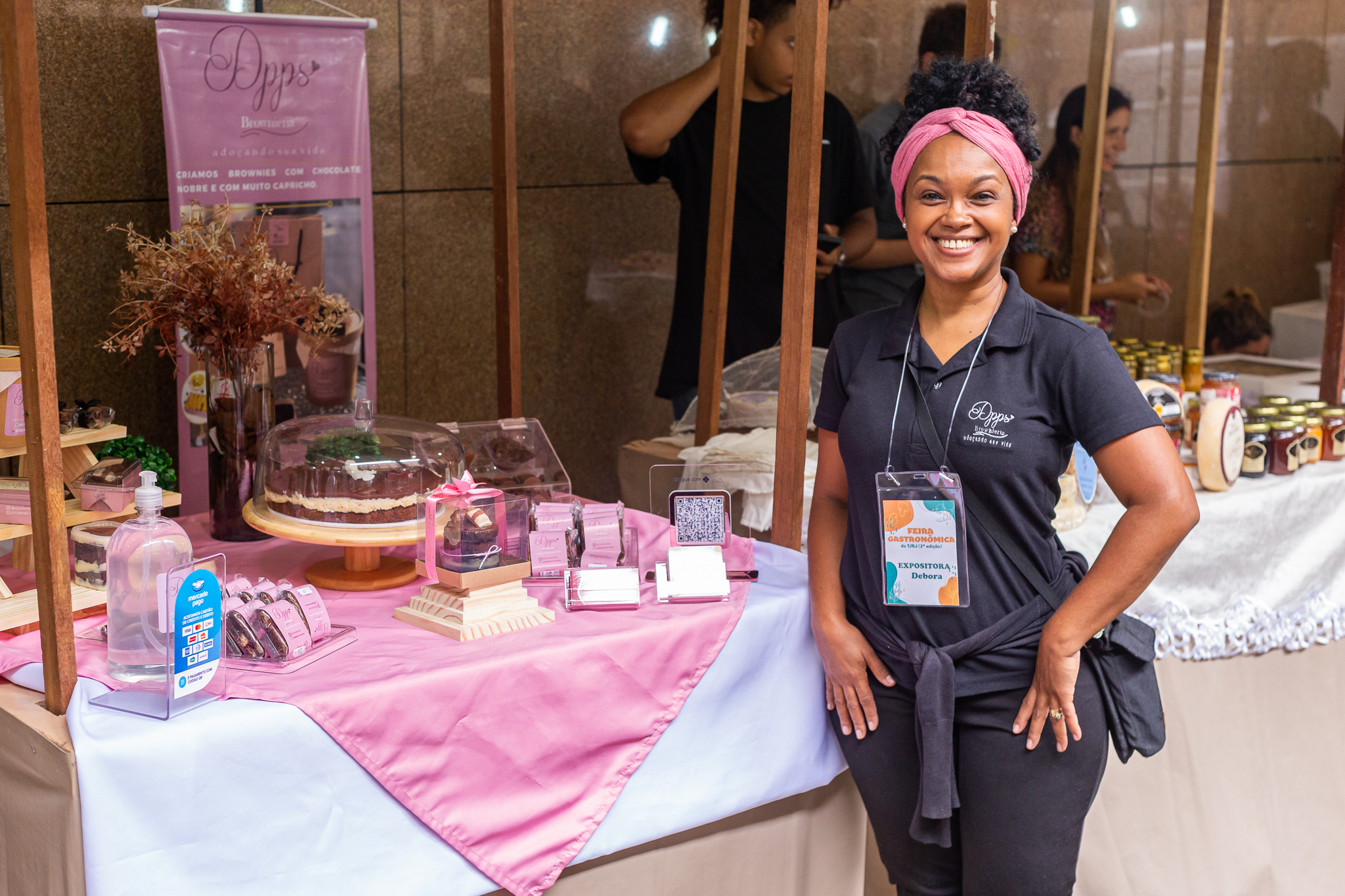 Débora Menezes, esposa de um servidor, é especializada em brownies e foi uma das vendedoras que participou, pela primeira vez, de uma feira gastronômica. Ela é enfermeira, mas deixou a profissão recentemente para trabalhar totalmente com confeitaria a fim de ter mais tempo com a família. “Estou muito ansiosa e feliz por estar aqui. Essa está sendo a minha primeira experiência em uma feira e tem sido animadora. Comecei a trabalhar com doces porque queria ter mais tempo com meus filhos e ter mais qualidade de vida. Então, abri minha empresa em novembro e, desde então, tenho feito muitas conexões e tido um retorno positivo”, contou.