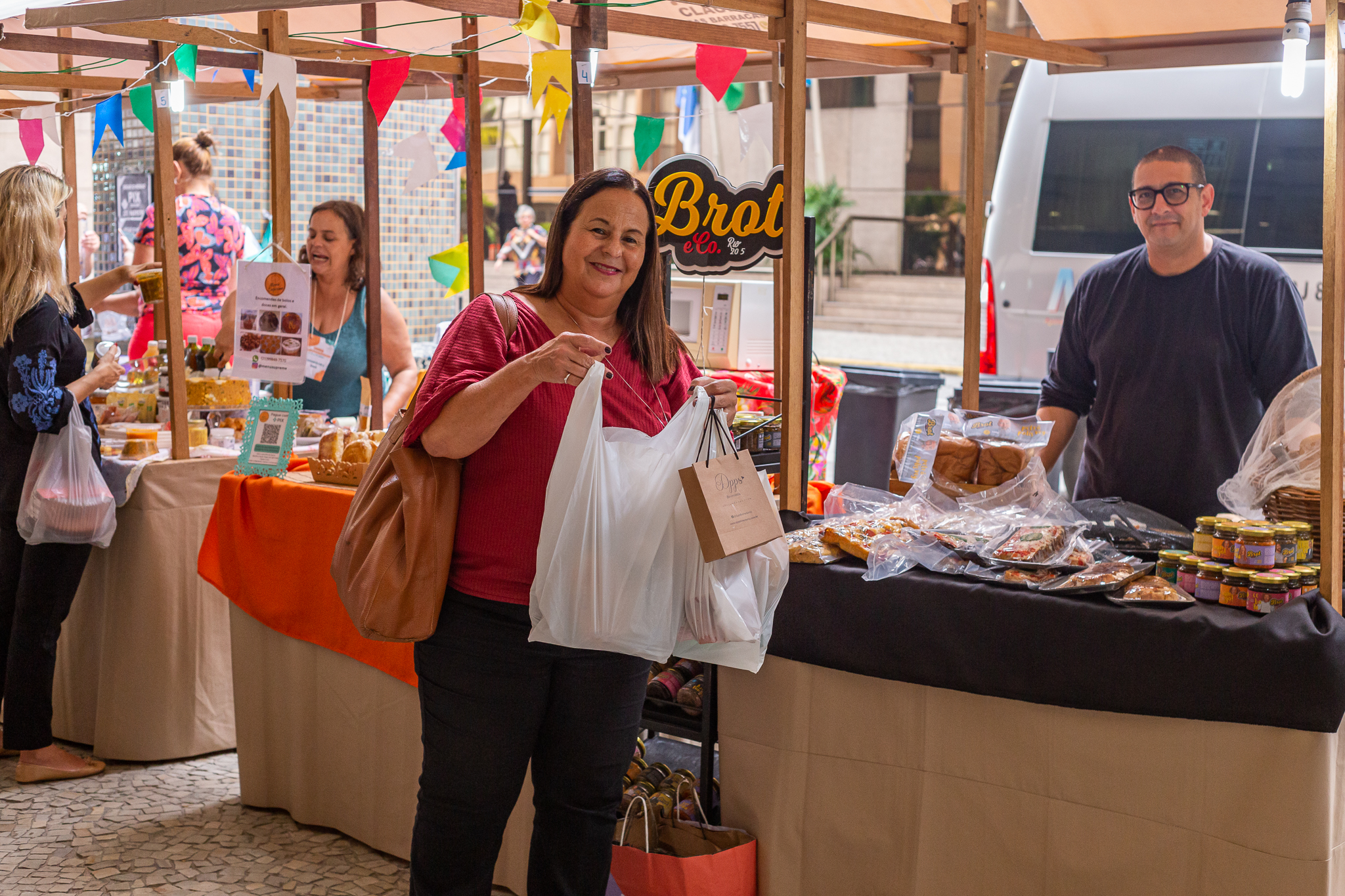 Entre os compradores mais assíduos da Feira está a Lacy Tavares, que trabalha na Ordem dos Advogados do Brasil (OAB) dentro do TJRJ. Com os braços carregados de sacolas, ela relatou seu entusiasmo com o evento. “Essa feira é maravilhosa! Inclusive, poderia ter mais vezes. Tem várias coisas que compro direto e os produtos são ótimos. Já peguei até o contato dos vendedores para comprar mais depois. Já comi o pão de queijo, o brownie com doce de leite, essa focaccia deliciosa. Amanhã vou voltar porque sei que vai acabar. Vale a pena comprar!, completou.