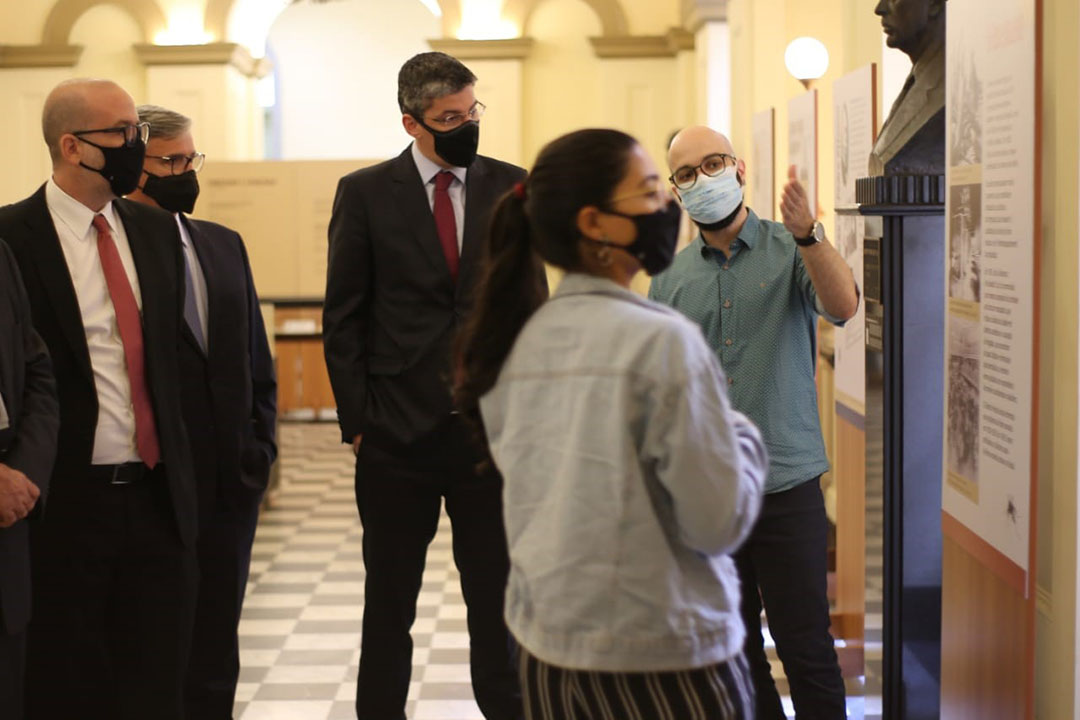 O presidente do Tribunal de Justiça do Estado do Rio de Janeiro (TJRJ), desembargador Henrique Carlos de Andrade Figueira, acompanhou na última terça-feira (26) a visita do diretor de redação e editor responsável do jornal O Globo, Alan Gripp, e do editor executivo do jornal, Paulo Celso Pereira, à exposição Pandemias e Epidemias no Rio de Janeiro, no Museu da Justiça do Rio.