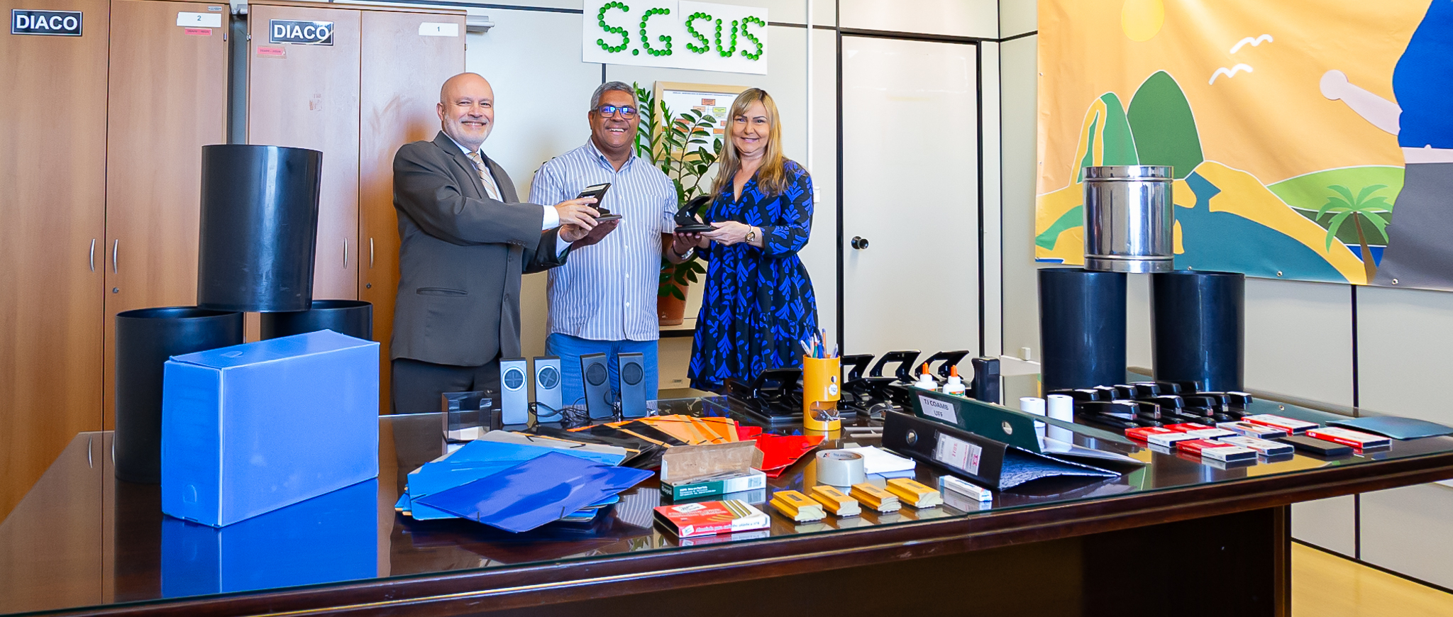 A Secretaria Geral de Sustentabilidade e Responsabilidade Social (SGSUS) fez a devolução de 80 materiais de consumo para o Serviço de Movimentação de Materiais Permanentes (Semop), na terça-feira (24/7), com o objetivo de estimular outras unidades do Poder Judiciário fluminense a aderirem à campanha "Menos é Mais".