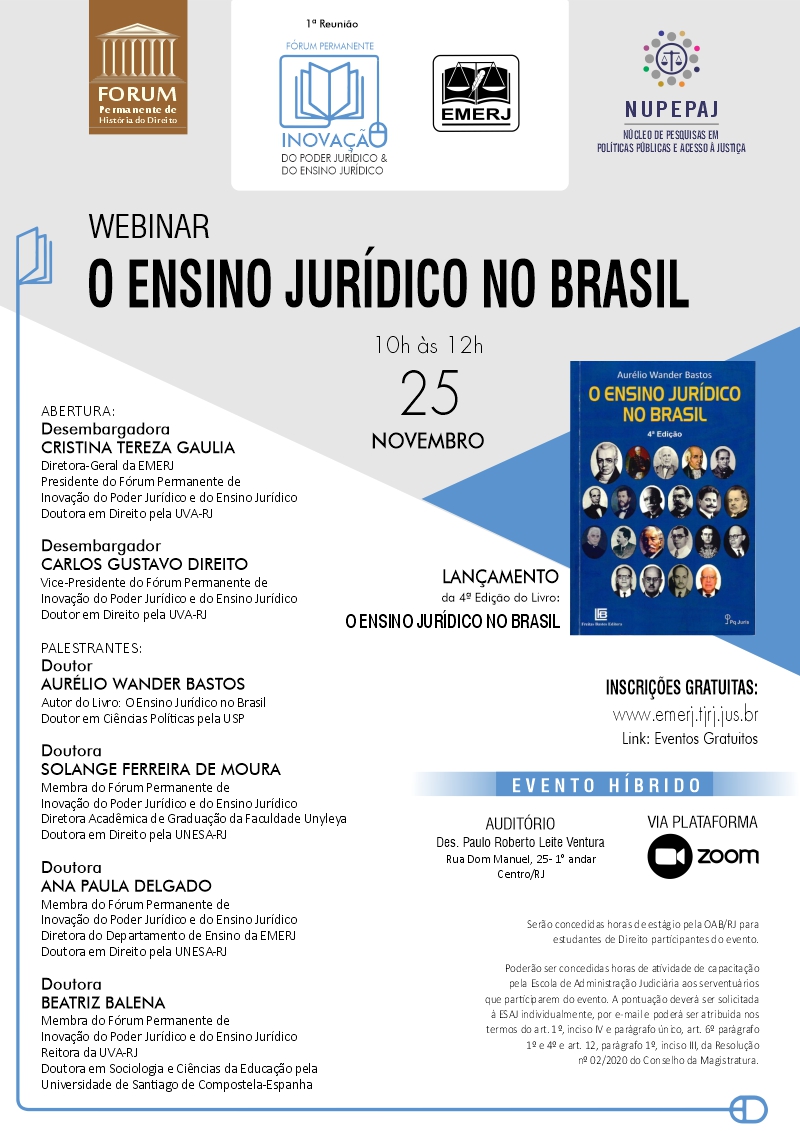 Nesta semana, a Escola da Magistratura do Estado do Rio de Janeiro (Emerj) traz nove eventos. Acompanhe!