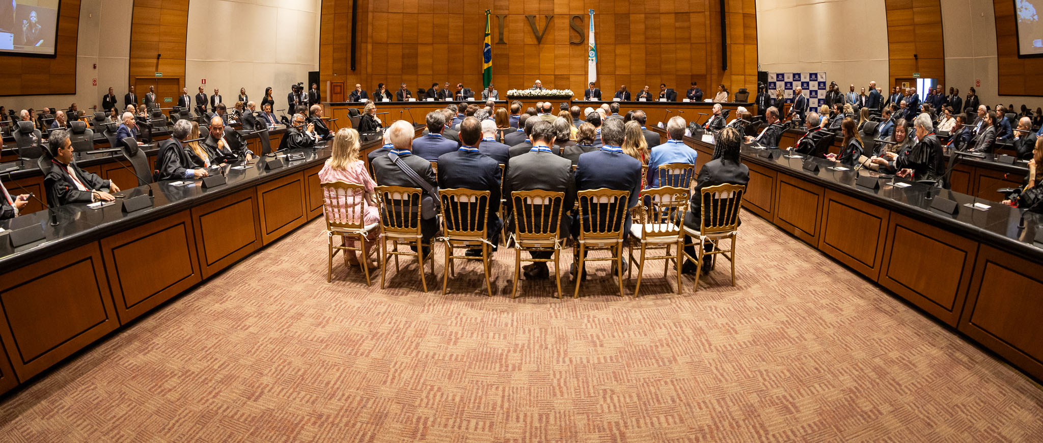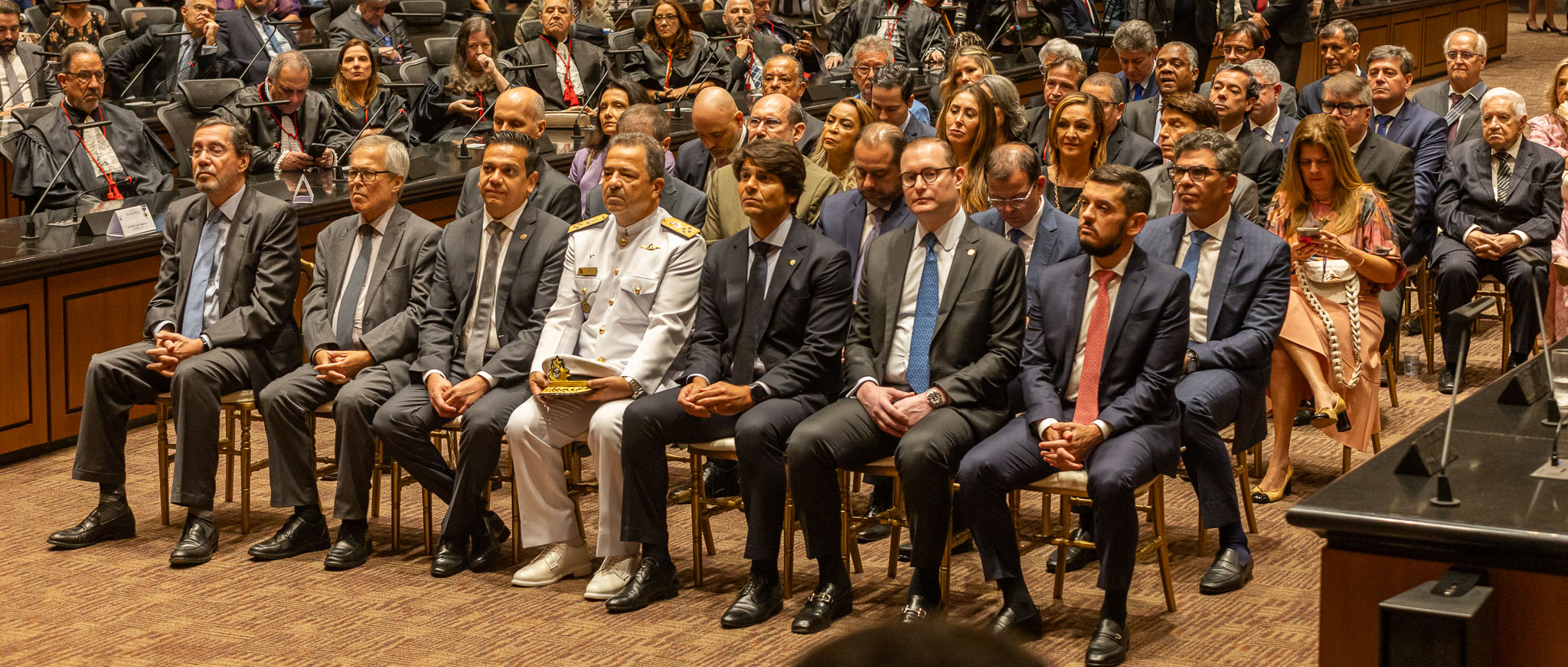 Realizada no Plenário Ministro Waldemar Zveiter, plenário do Tribunal Pleno do TJRJ, a cerimônia conduzida pelo presidente do Tribunal de Justiça do Estado do Rio de Janeiro, desembargador Ricardo Rodrigues Cardozo, contou com as presenças do governador do estado do Rio, Claudio Castro; do presidente do Congresso Nacional, senador Rodrigo Pacheco; do ministro Cristiano Zanin Martins, do Supremo Tribunal Federal; do corregedor Nacional de Justiça, ministro Luis Felipe Salomão; e do conselheiro do CNJ, desembargador Mauro Martins, entre outras autoridades dos poderes Judiciário, Legislativo e Executivo.