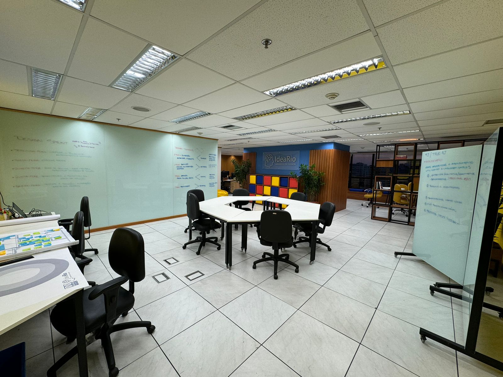 O espaço busca implementar práticas inovadoras que possam melhorar a prestação jurisdicional, otimizar processos e promover uma justiça mais ágil, acessível e atendendo às necessidades da sociedade por meio de soluções criativas e eficientes. Com móveis coloridos e um espaço para reunião com mesas que formam uma colmeia, podendo ser reorganizadas em diferentes formatos, e painéis móveis, o novo laboratório do TJ atua como um catalisador de ideias, reunindo servidores, magistrados, acadêmicos e até mesmo cidadãos, todos pensando coletivamente em soluções inovadoras. O IdeaRio utiliza metodologias ágeis e ferramentas de Design Thinking para criar modelos e testar novas ideias com foco na melhoria contínua dos serviços prestados ao usuário.