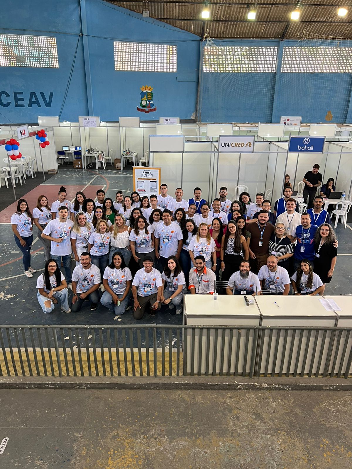 Funcionários que trabalharam no feirão "Limpa Nome" posam para foto após o sucesso das negociações