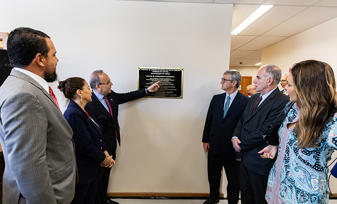 O juiz Glauber Bitencourt Soares da Costa, da Vara de Execuções de Medidas Socioeducativas; a 2ª vice-presidente do TJRJ, desembargadora Suely Lopes Magalhães; o presidente do TJRJ, desembargador Ricardo Rodrigues Cardozo; o presidente do TRE-RJ, desembargador Henrique Carlos de Andrade Figueira; o corregedor-geral da Justiça, desembargador Marcus Henrique Basílio; e a juíza Vanessa Cavalieri, da Vara da Infância e da Juventude da Capital