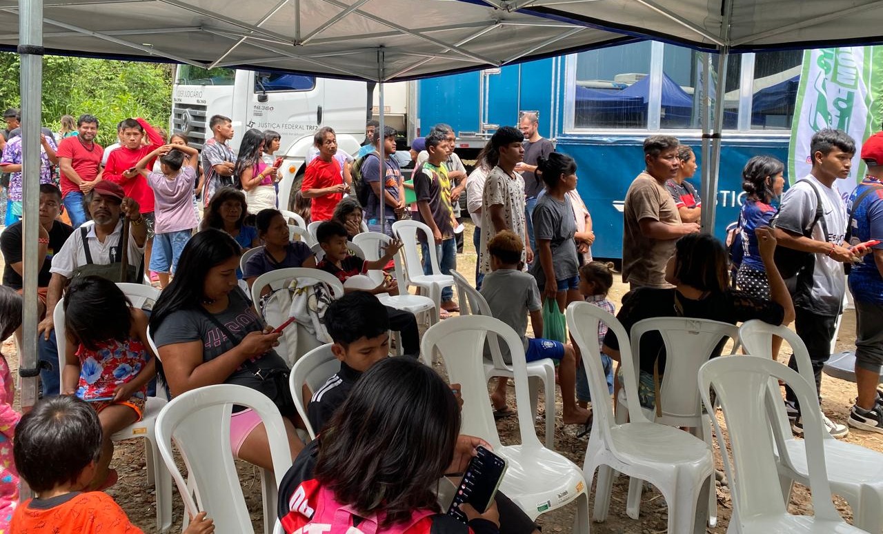 A presença da Justiça Itinerante em aldeias atraiu dezenas de integrantes de povos indígenas em busca de seus direitos e de cidadania