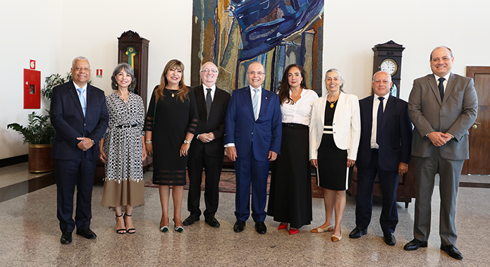O presidente do TJRJ, desembargador Ricardo Cardozo com os desembargadores da 9ª e 10ª Câmara de Direito Público Carlos Alberto Machado, Márcia Succi, Isabella Pessanha Chagas, Álvaro Henrique Teixeira Almeida, Claudia Nascimento, Maria Aglaé Tedesco Vilardo, Claudio Luis Braga Dell`Orto e José Claudio de Macedo Fernandes, e a desembargadora Marcia Succi, da Amaerj