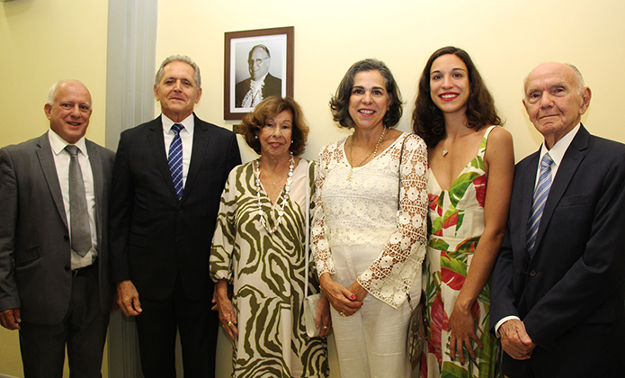 Os desembargadores Claudio Dell"Orto, diretor-geral da Emerj, e Fabio Dutra, presidente da Andes, com Marlene, Heloisa e Isabella Carpena Amorim e o orador da cerimônia, desembargador Sergio Cavalieri
