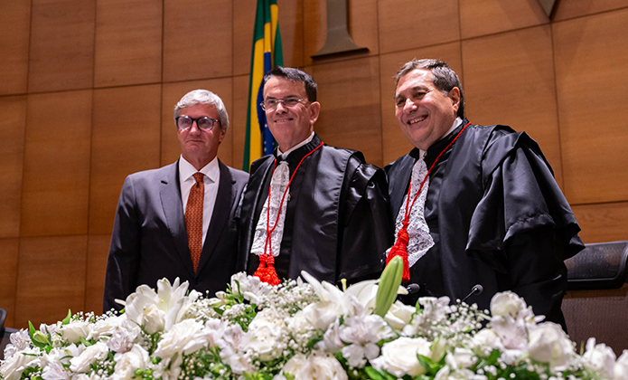 Em nome de todos os membros do TRE-RJ, coube ao desembargador eleitoral Ricardo Perlingeiro saudar os novos presidente, vice-presidente e corregedor eleitoral do Judiciário Eleitoral fluminense.