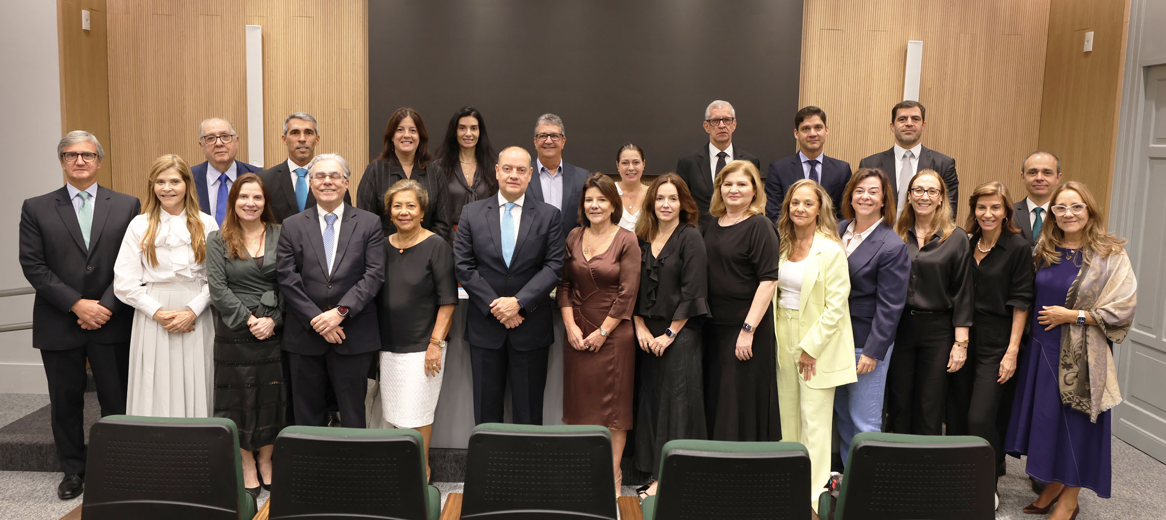 O presidente do TJRJ desembargador Ricardo Couto e a desembargadora Denise Nicoll com os magistrados diretores e conselheiros da Mútua Henrique Figueira, Roberto Felinto, Rodrigo Faria, Paula Feteira, Carla Bouzo, Antônio Siqueira, Marcia Hollanda, Heleno Nunes, Sandro Pitthan, Paulo Wunder, Paulo Feijó, Denise Vaccari, Maria Helena Machado, Milton Fernandes, Zélia Machado, Alessandra Bilac, Mônica Feldman, Márcia Alvarenga, Kátia Monnerat, Sandra Kayat e Maria Isabel Paes