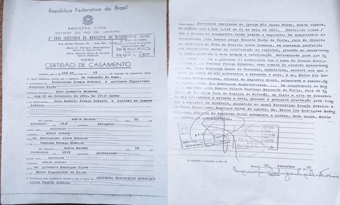 Aos 88 anos, Francelino França carrega com orgulho a marca de ser o primeiro divorciado do Brasil. Conheceu sua primeira esposa, Arethuza, na Faculdade Federal de Direito, em Niterói, e, ao avistá-la pela primeira vez, disse a um amigo: “vou casar com ela”. E isso realmente aconteceu. “Eu estava no terceiro ano e vi o pessoal do primeiro ano entrando. Um rapaz estava do meu lado e eu falei para ele: vou casar com aquela moça ali. Ele se lembrou disso a vida toda”, contou.