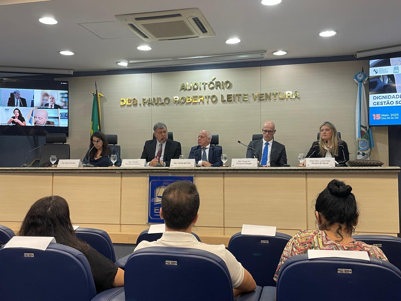A Escola da Magistratura do Estado do Rio de Janeiro (Emerj) promoveu, no dia 15 de maio, a aula magna “Dignidade Pós-Humana no Transporte e Gestão Socioambiental”, vinculada à Turma 4 da Pós-Graduação da Escola de Administração Judiciária do TJRJ (Esaj), coordenada pelos desembargadores Fernando Cerqueira Chagas e André Gustavo Corrêa de Andrade.