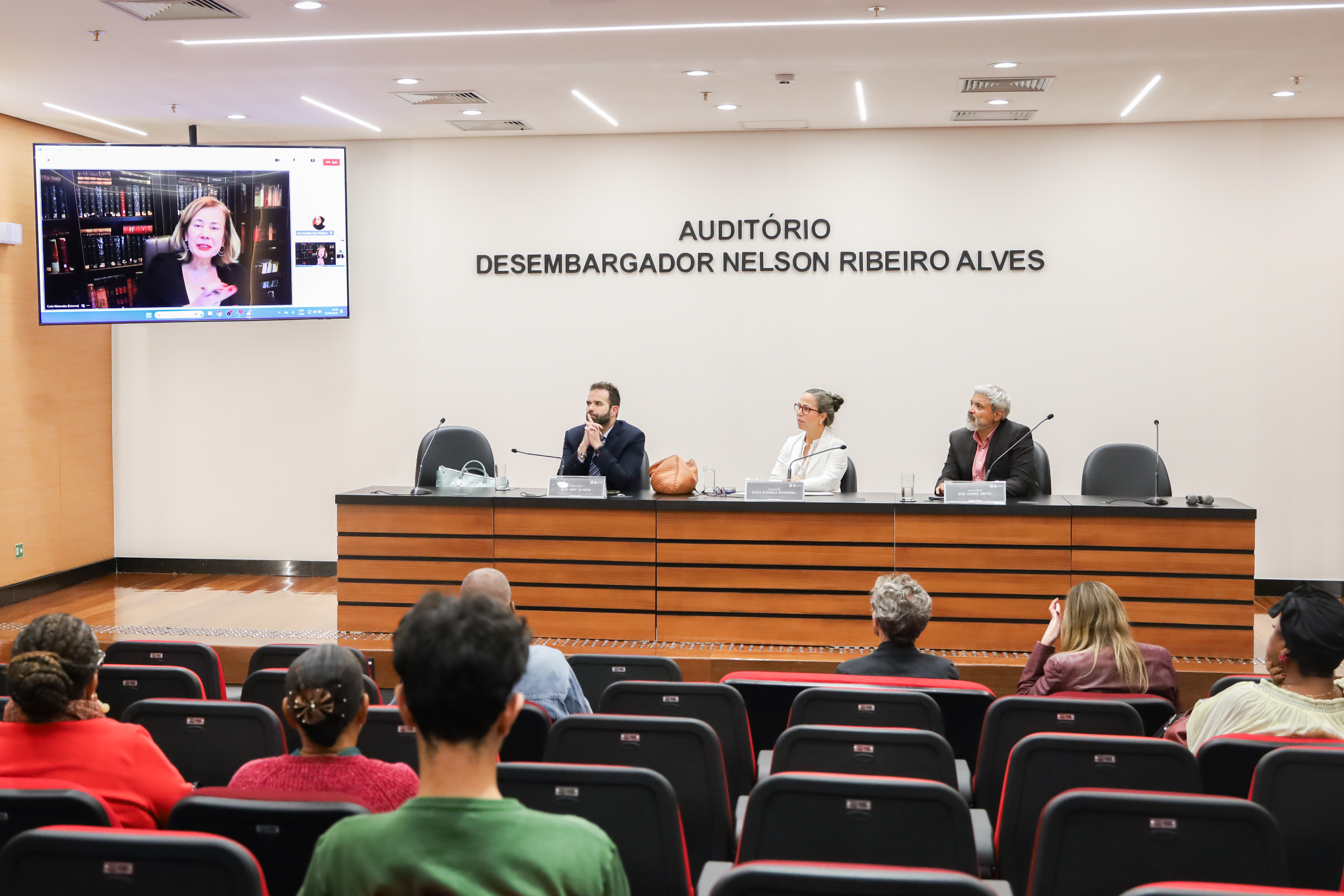 Na abertura, a juíza Daniela Bandeira, responsável pela mediação do cine-debate, reforçou o papel do CCPJ em promover um espaço de reflexão dentro do Poder Judiciário: “O Centro Cultural foi idealizado para trazer um olhar diferente e colocar em perspectiva temas que são muito importantes e muito caros para nós, que atuamos no dia-a-dia recepcionando os conflitos e tentando pacificá-los”.