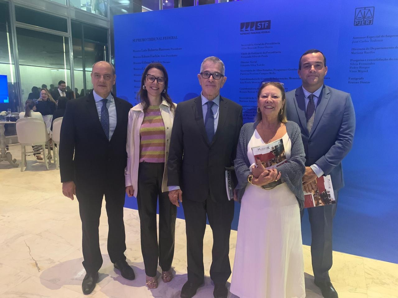 O presidente do TJRJ, desembargador Ricardo Couto; a presidente da Amaerj, juíza Eunice Haddad; o ministro do Superior Tribunal de Justiça Antonio Saldanha Palheiro; a 2ª vice-presidente do TJRJ, desembargadora Maria Angélica Guimarães Guerra Guedes; e o juiz auxiliar da 2ª Vice-Presidência do TJRJ Marco Couto.