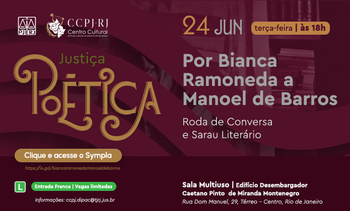 O Centro Cultural do Poder Judiciário (CCPJ) estreia, no próximo dia 24 de junho, às 18h, o sarau literário Justiça Poética. O homenageado será o poeta Manoel de Barros.