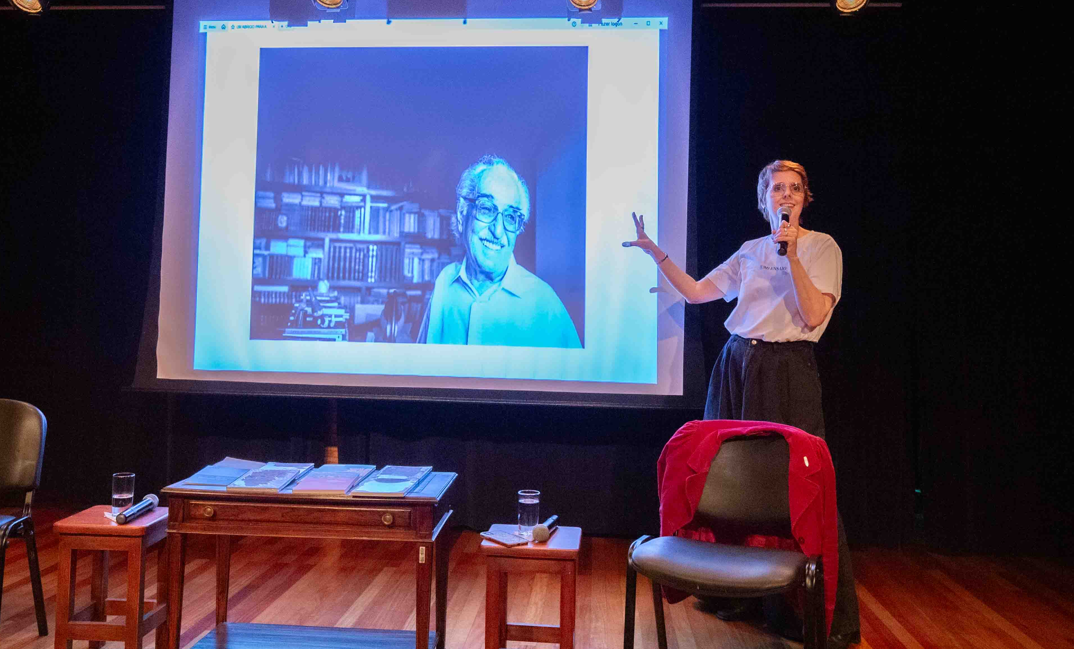 Bianca também aproveitou a oportunidade para conversar com o público sobre as interações que teve com Manoel de Barros enquanto este ainda era vivo. Foi ela quem escreveu o roteiro e atuou na peça “Inutilezas”, baseada na obra do poeta. Ela conta que passou a ler suas publicações antes de se encontrar com Manoel em uma premiação literária e que, a partir dali, começaram a conversar através de cartas. Em uma delas, escreveu ao poeta sobre o desejo de transformar seus versos em peça de teatro e recebeu um retorno positivo.