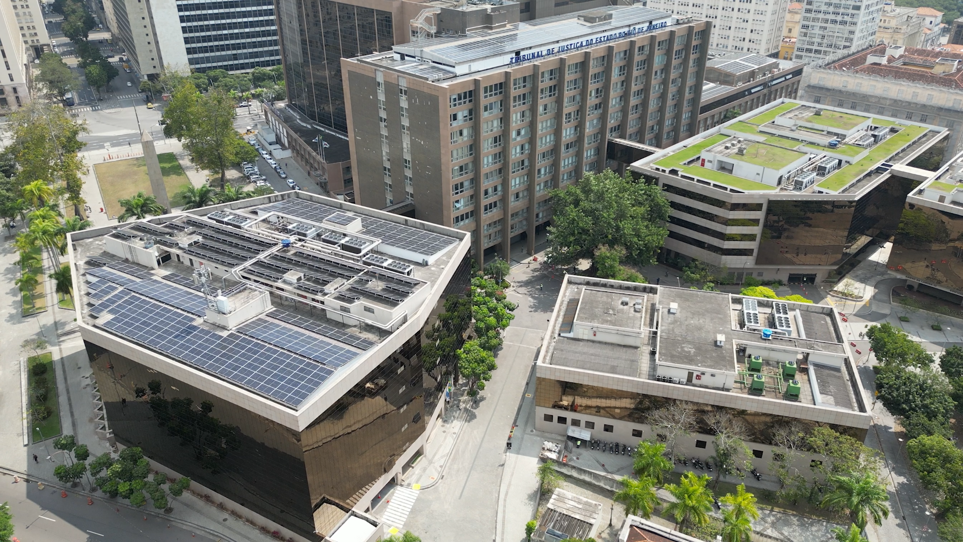 Prédios que integram complexo do Judiciário fluminense no Centro do Rio já contam com painéis fotovoltaicos e telhados verdes