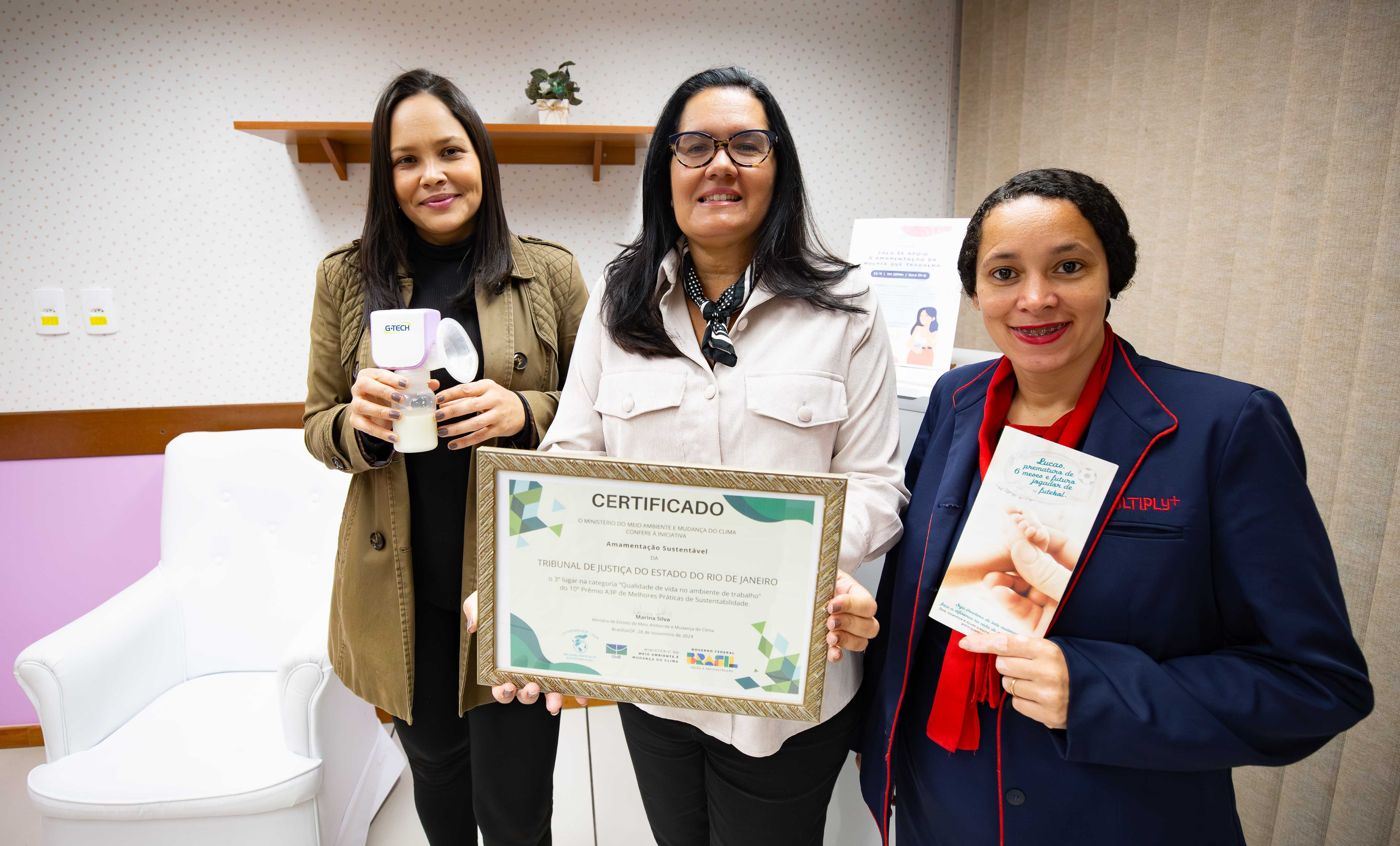 No Tribunal de Justiça do Rio de Janeiro (TJRJ), a Sala de Apoio à Amamentação da Mulher que Trabalha, primeira de um tribunal no país a ser certificada pelo Ministério da Saúde, tem colaborado com a rotina de servidoras, colaboradoras e de todas as lactantes que circulam pelas dependências do Judiciário fluminense. Criado em 2023, o espaço faz parte do projeto Amamentação Sustentável da Secretaria-Geral de Sustentabilidade e Responsabilidade Social (SGSUS), com o objetivo de disponibilizar um local seguro e acolhedor para que seja possível extrair e armazenar o leite durante o expediente em condições adequadas de saúde e higiene.