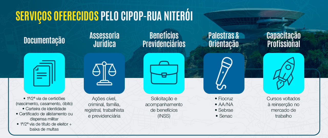 A unidade funcionará integrada ao Programa municipal Recomeço, que será inaugurado no dia 22 de agosto na Rua José Figueiredo, 30, no Centro de Niterói. A iniciativa oferecerá assessoria jurídica, capacitação para o mercado de trabalho, reforço escolar, emissão de documentos, como carteira de identidade e título de eleitor e palestras, entre outras atividades.