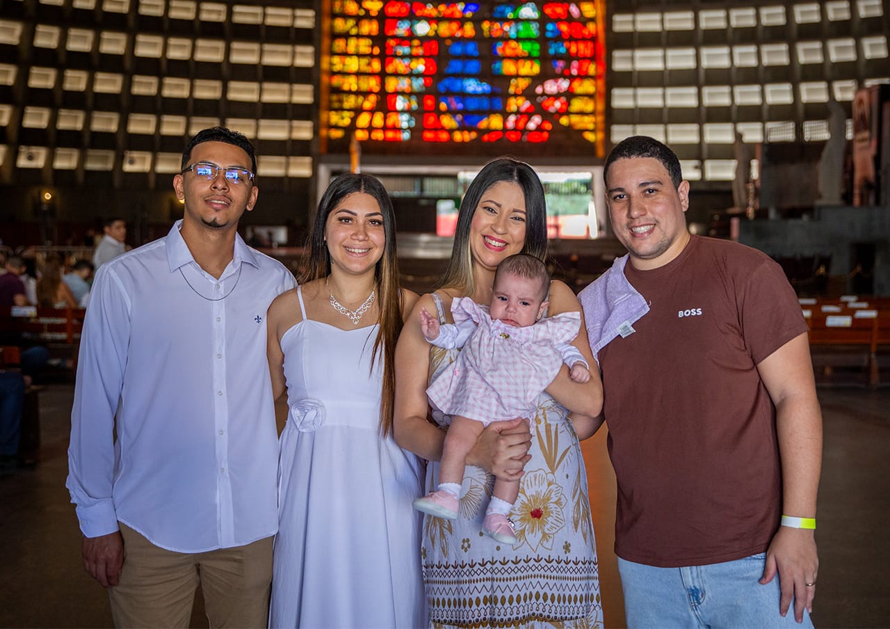 A manhã ensolarada de sábado na Catedral Metropolitana também recebeu várias histórias, cada uma com suas idas e vindas. Entre elas, está a de Milena e Luiz Eduardo, que comemoraram cinco anos juntos na última semana. Eles se conheceram em um encontro aleatório da vida. “Eu fazia faculdade em Niterói, e ele trabalhava no Rio. Nesse meio tempo, um passando pelo outro, ele mexeu comigo. Ficamos entre conversas rápidas, sempre nos esbarrando pelo caminho, até que a amizade cresceu, e, hoje, estamos aqui com o fruto do nosso amor”, conta Milena, referindo-se à pequena Maria Eduarda, de apenas sete meses. Curiosamente, foi por causa dela que o casal descobriu o casamento comunitário. No dia do batizado da menina, realizado há pouco mais de um mês na mesma Catedral, o padre anunciou o evento. “Na semana seguinte já demos início ao processo e, hoje, estamos aqui”, lembrou Luiz Eduardo.