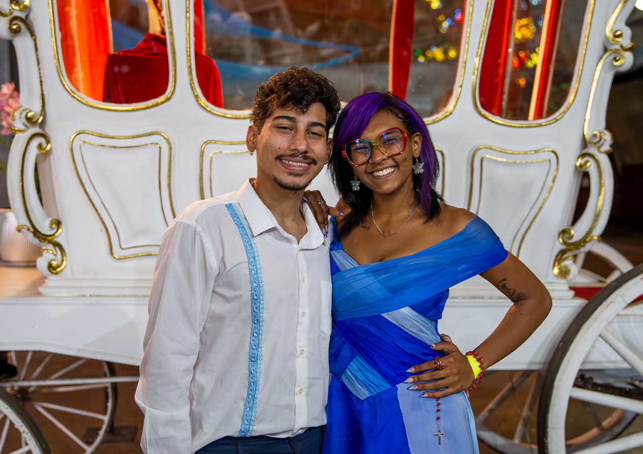 Entre tantas histórias, também estava a de Estrella e Fábio Júnior que, como é tão comum hoje em dia, se conheceram por um aplicativo de relacionamento. Para Estrella, o lugar da cerimônia é especial, pois um ente muito querido dela está sepultado em uma cripta da Catedral. “Ele partiu no ano em que eu faria 15 anos, então, eu nem cheguei a fazer a minha festa, porque não seria o mesmo sem ele lá. Aí, a minha avó ouviu na Rádio Catedral o anúncio do casamento, conectamos uma coisa com a outra, e eu fiquei pensando que essa seria a minha chance de o meu tio estar me dando essa benção de me levar ao altar. ”