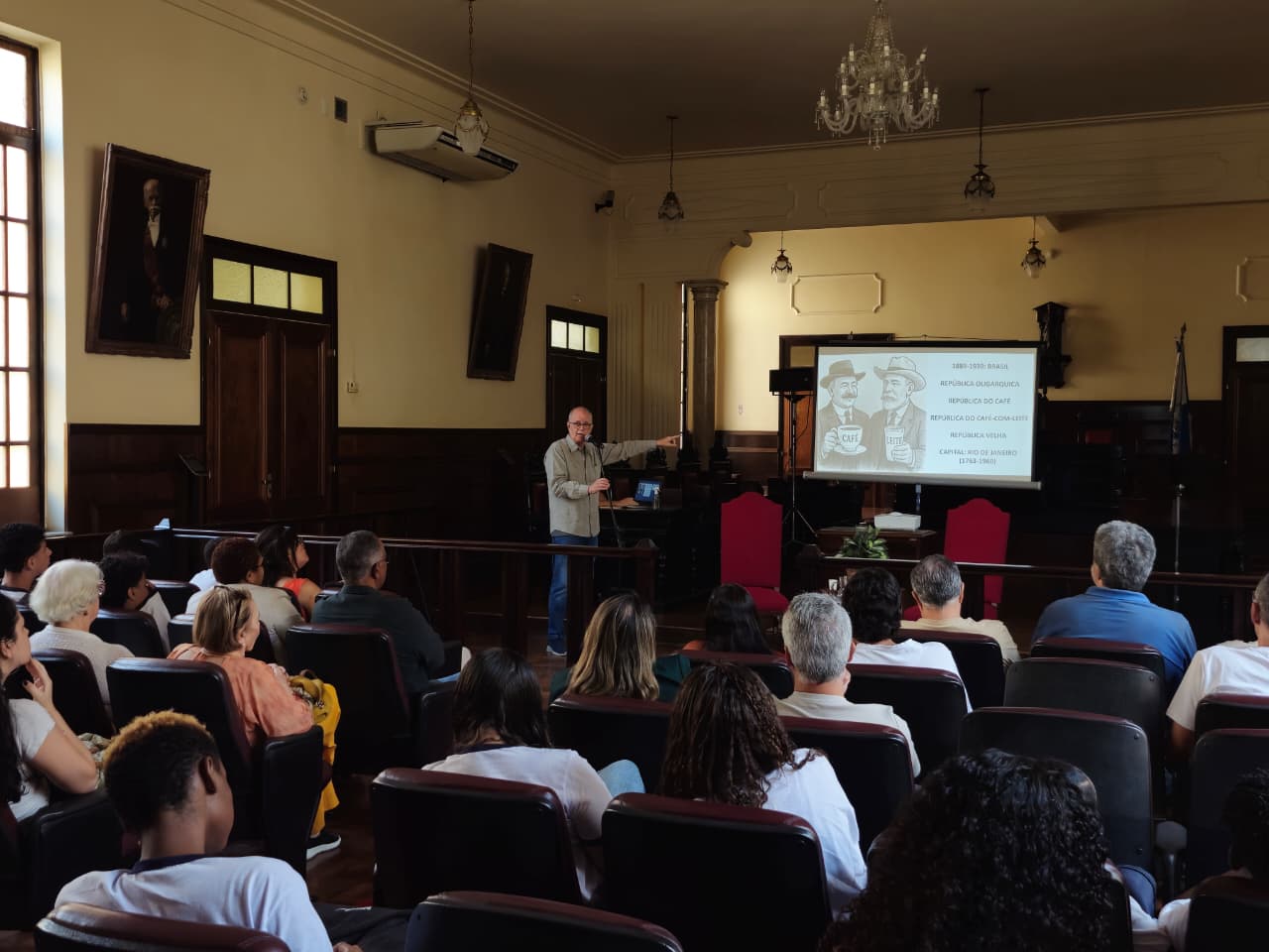 A sede do Museu da Justiça de Niterói recebeu, na tarde desta sexta-feira, 19 de setembro, a palestra “Breve história da República através do futebol, até para quem não gosta de futebol", apresentada ao público pelo professor de História e Sociologia Marcelo Quaresma, graduado pela Universidade Federal Fluminense (UFF).
