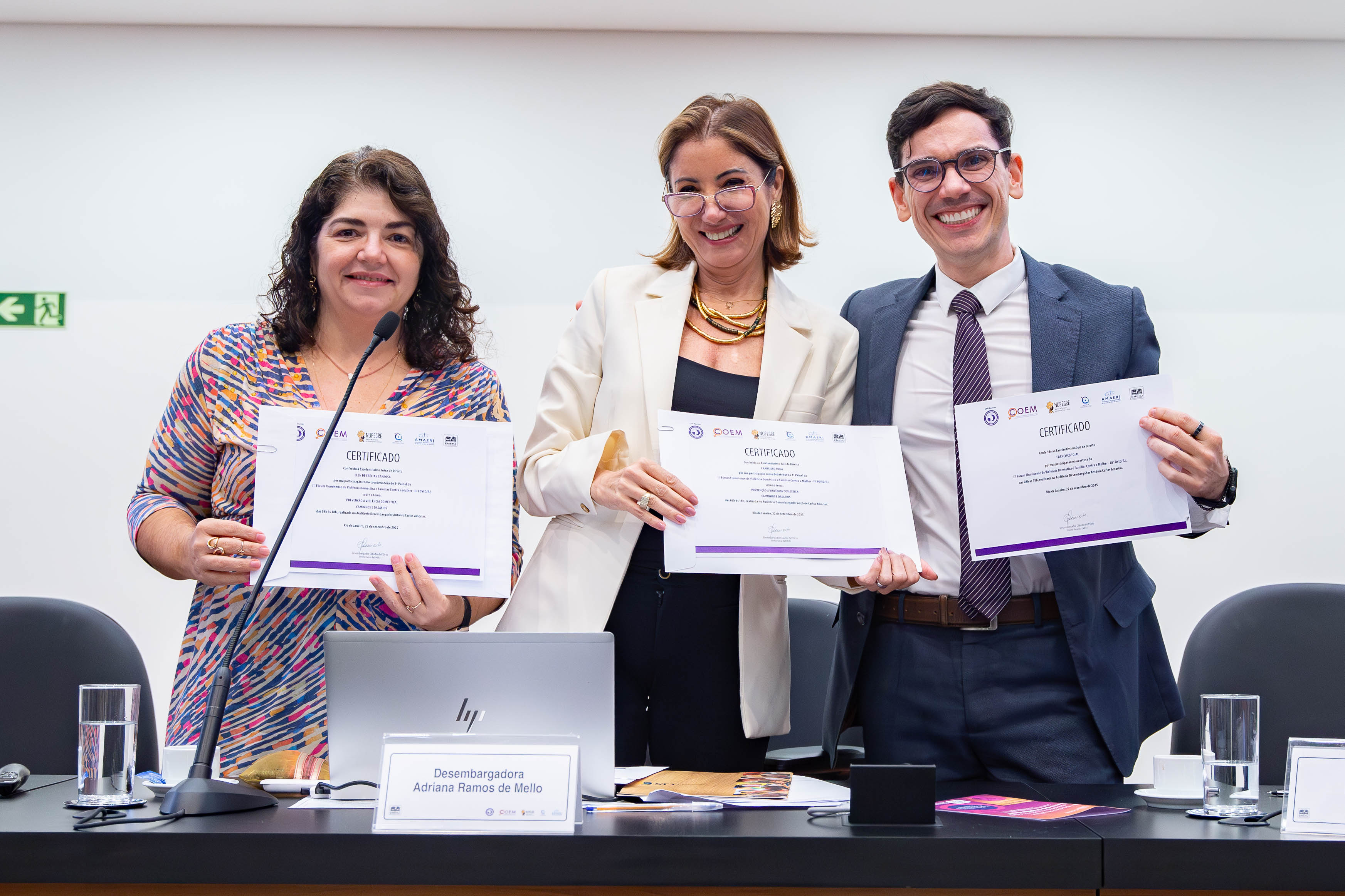 Juíza do TJRJ Elen de Freitas Barbosa, desembargadora do TJRJ Adriana Ramos de Mello e o juiz de Direito do TJPE Francisco Tojal