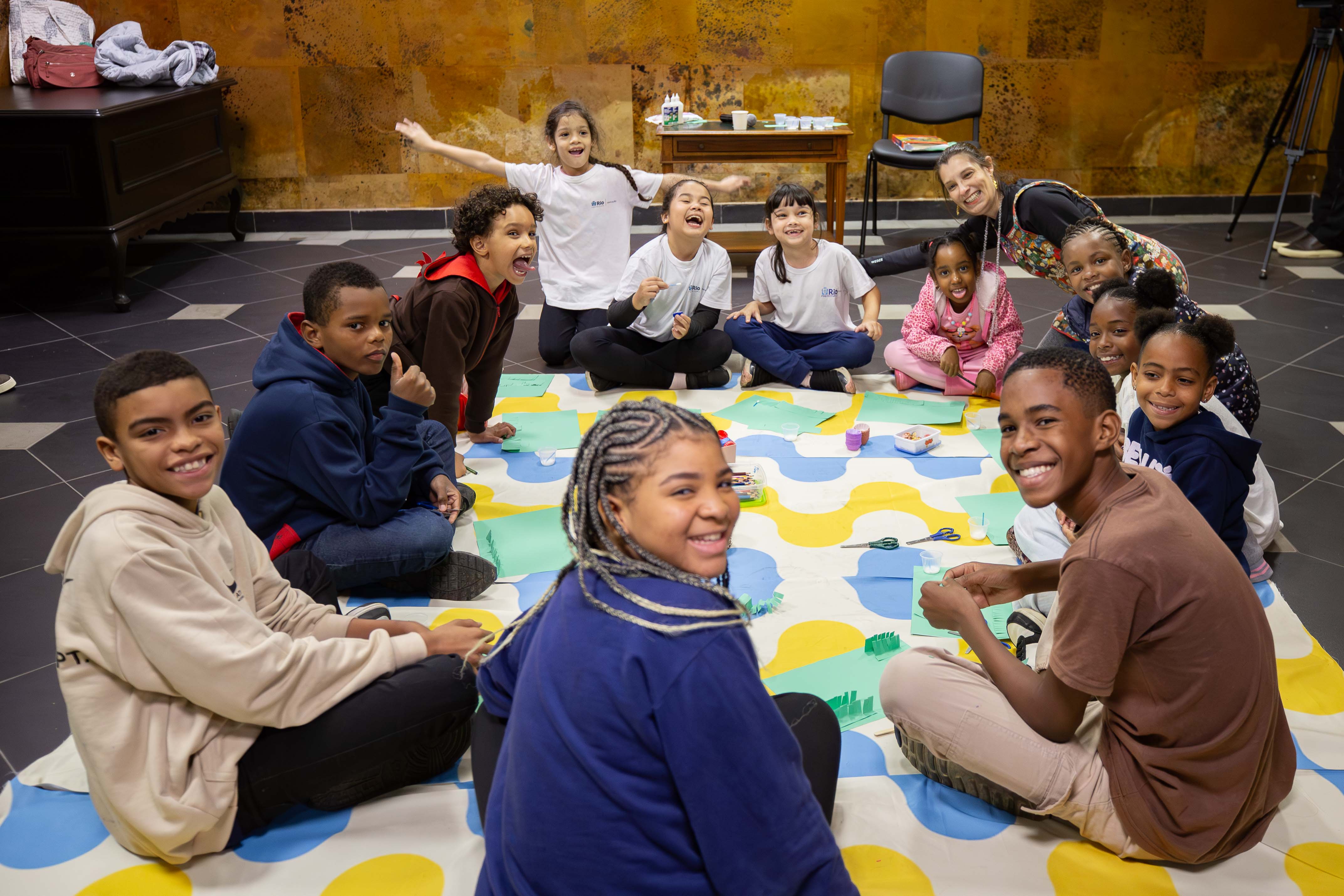 Crianças participam de oficina de colagem em ação promovida pelo CCPJ