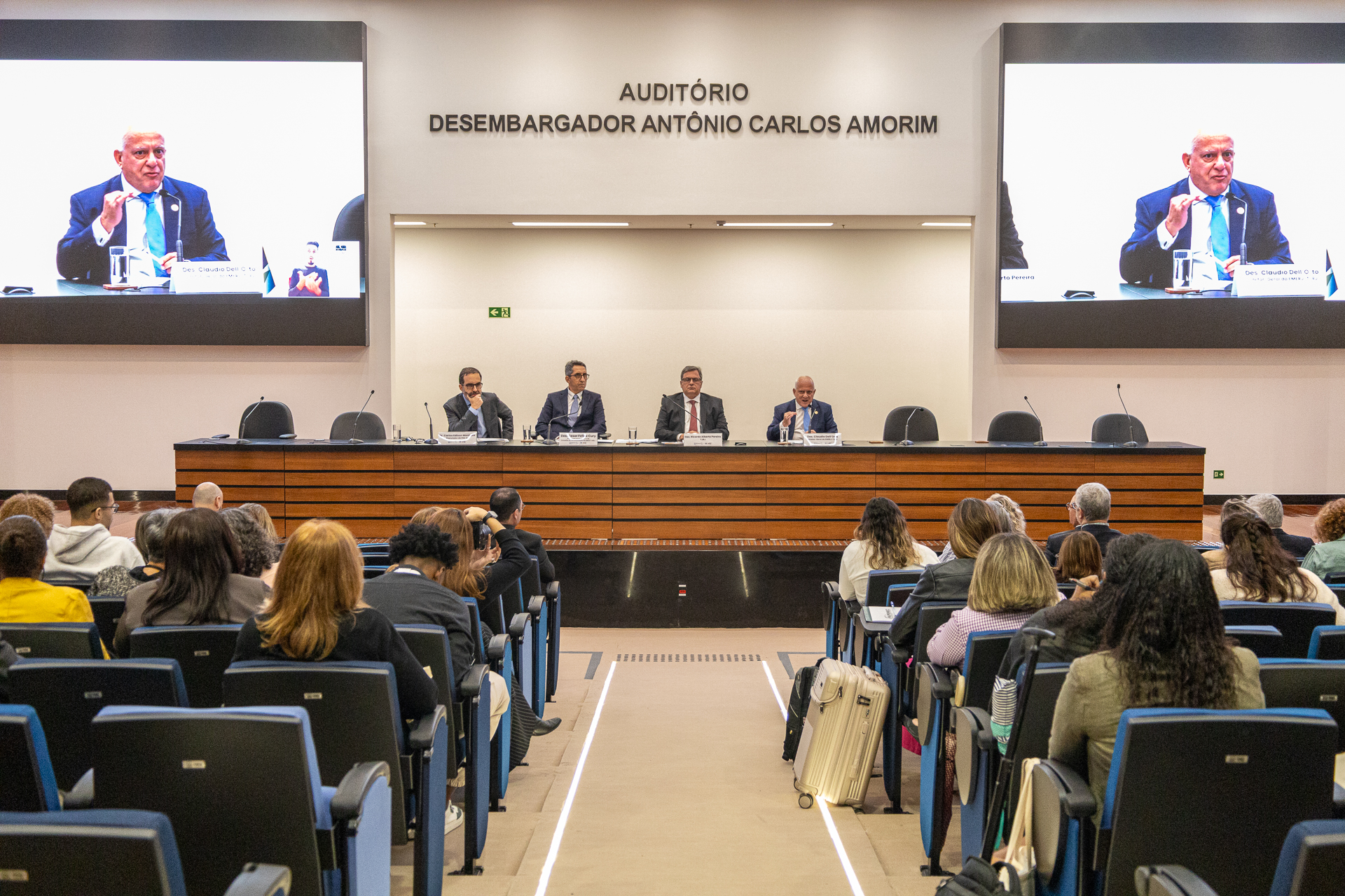 Da esquerda para a direita, estão à mesa o procurador Carlos Edison do Rêgo e os desembargadores Cesar Cury, Ricardo Alberto Pereira e Cláudio dell’Orto