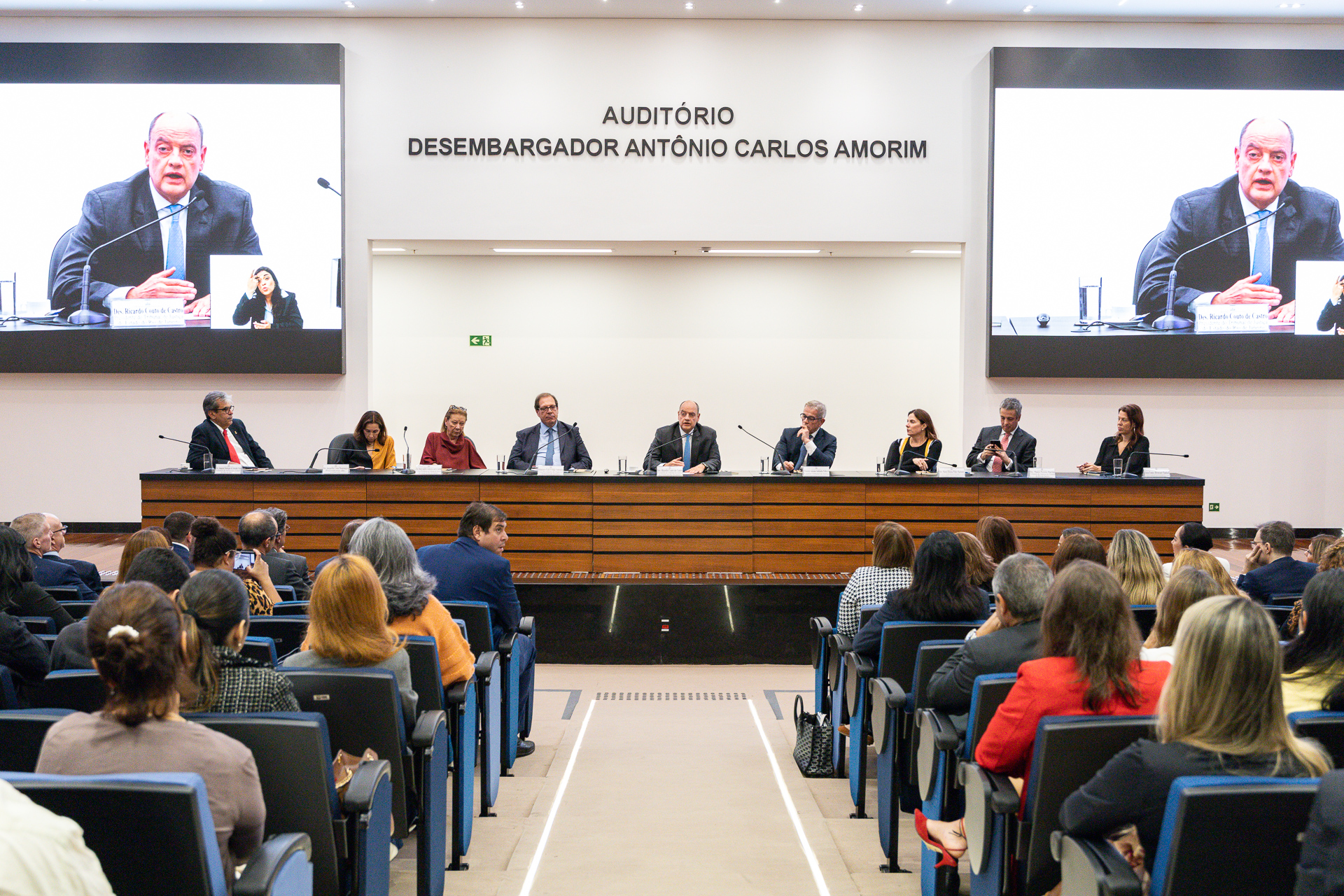 A mesa do painel foi composta também pela 2ª vice-presidente do TJRJ, desembargadora Maria Angélica Guimarães Guerra Guedes, pelo desembargador aposentado Sergio Cavalieri Filho (presidente do TJRJ no biênio 2005-2006) e pela presidente da Associação dos Magistrados do Estado do Rio de Janeiro (Amaerj), juíza Eunice Haddad.
