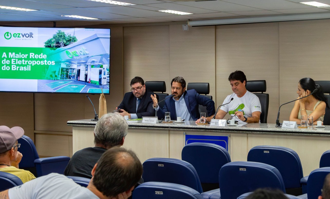 Da esquerda para a direita: o secretário-geral da SGGIC, Carlos Brasil; o CEO da EZVolt, Gustavo Tannure; o secretário-geral da SGSUS, Carlos Eduardo Menezes; e a coordenadora de Políticas Públicas do Sebrae, Angélica Gusmão
